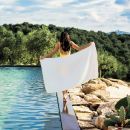 Extremely soft and luxurious yacht towel, made with the finest cotton fibers. Sun and chlorine resistant, its bias binding ensures spectacular durability. With an elegant design that provides an exclusive and luxurious touch, this towel is finished with rounded corners. Super light, pre-washed and pre-shrunk, which ensures greater absorption capacity.
