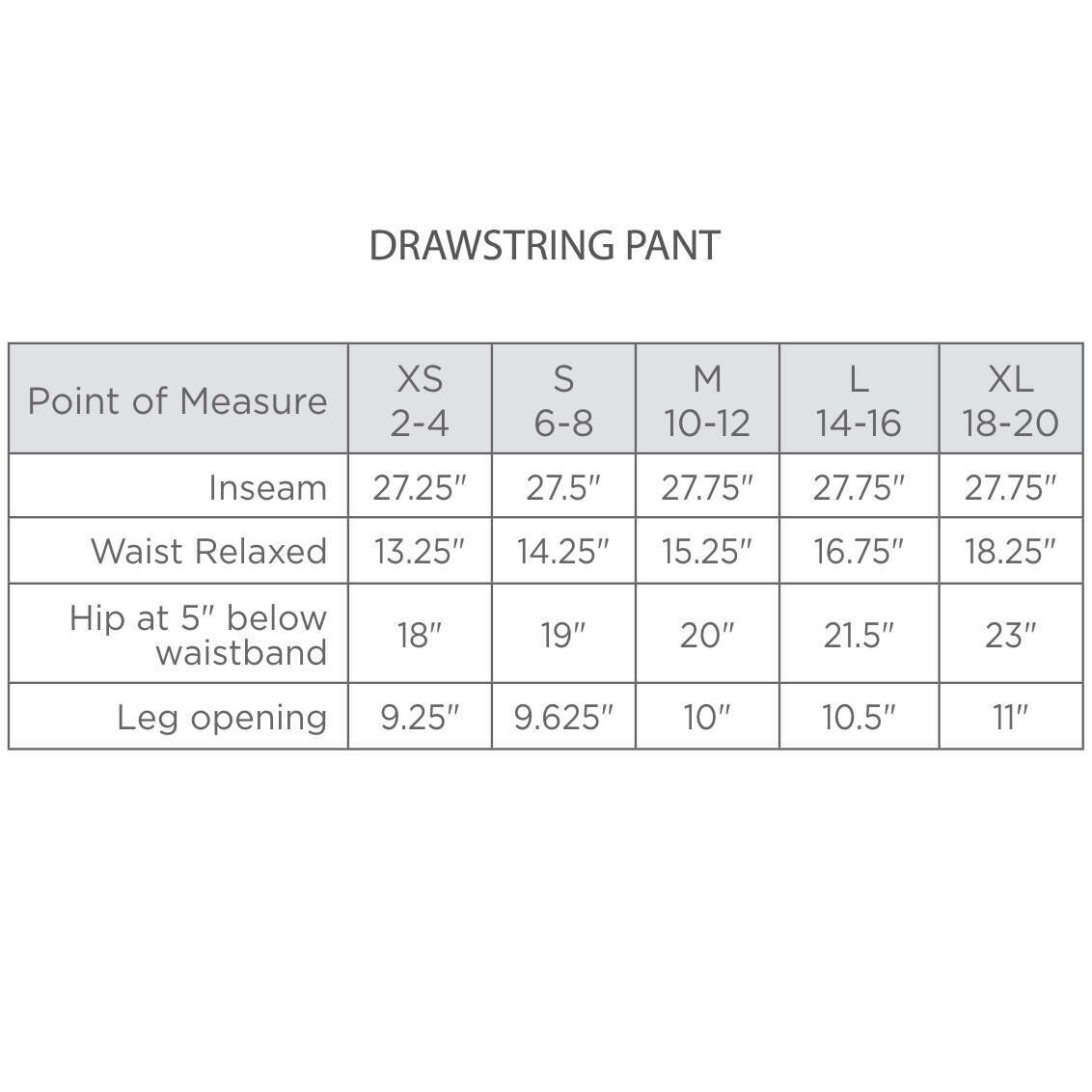 Extra Large: US Women's Size: 18 - 20, Waist Relaxed: 35.5", Inseam: 27.75", Leg Opening: 11", Hip: 46".