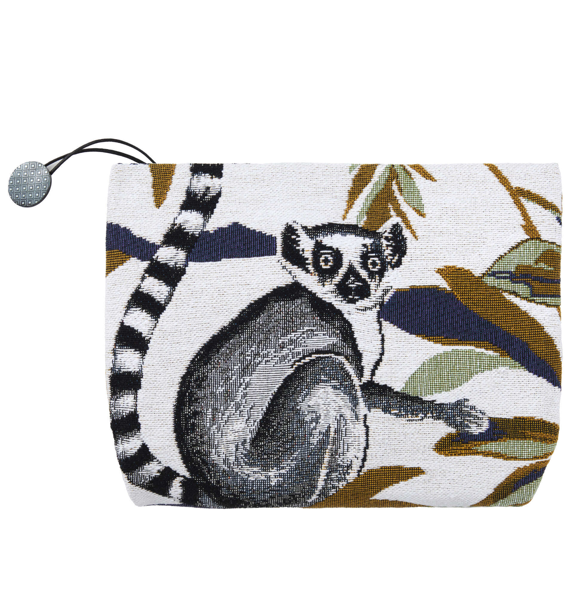 Inspired by mysterious vegetation, the Lemurian tote reveals the discreet, graphic universe of a little lemur, in a tapestry rich in subtlety and poetry.