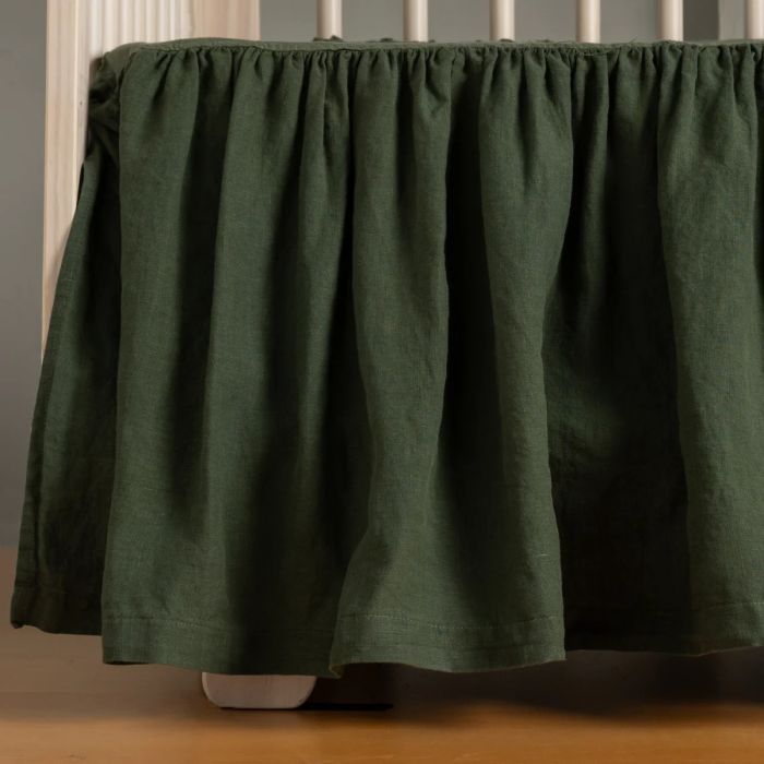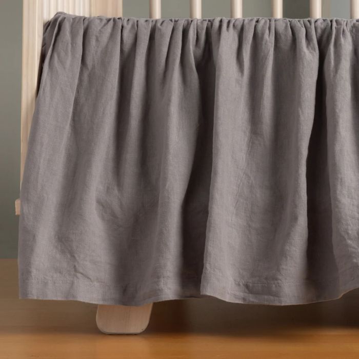 Our Linen Crib is all about the quality of the weave. The Crib Sheet is designed with a pocket to accommodate standard crib mattresses, it easily secures over the mattress and topper and only becomes softer with every wash. At once understated and elegant, our Linen Crib Skirt accompanies any ensemble with ease.