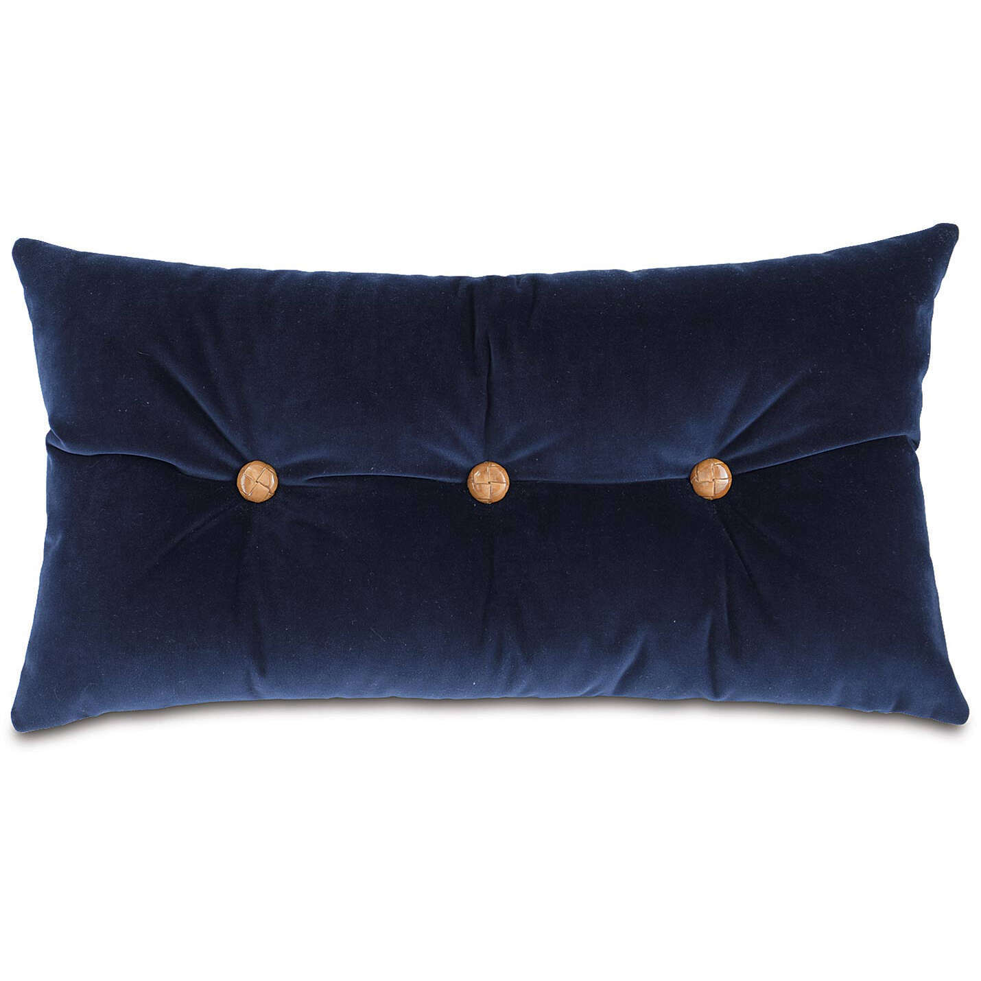 Bolster: Button-tufted decorative pillow in a plush velvet fabric. Tufted with decorative buttons on face. Knife edge finishing.
