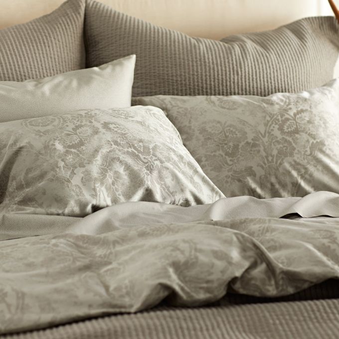 This exquisite baroque floral, intricately woven in Egyptian Cotton, is soft and light-weight with superb depth and detail.