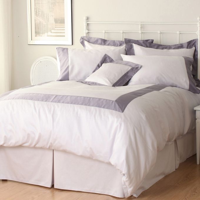 The Cambridge is a classic two colour design featuring any two of our Capri solid 100% cotton sateens. Choose one colour for the base and another for a wide band around the shams and duvet. Please note: band must be a darker Capri than the main fabric to avoid the darker colour showing through the band. See our 90 Capri colours page for options.