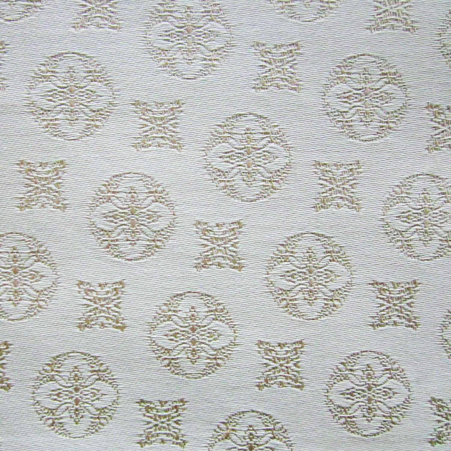 Dust Ruffles: Allover Duomo, available gathered or tailored, with three panels, 3” platform strips, a 14” drop and a plain hem finish.