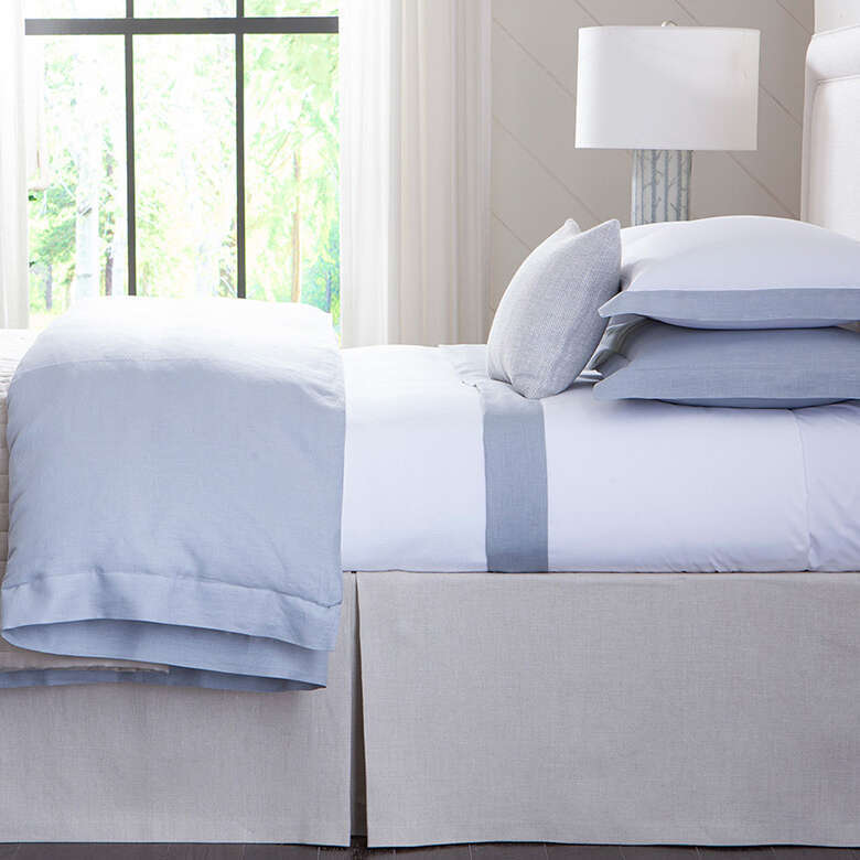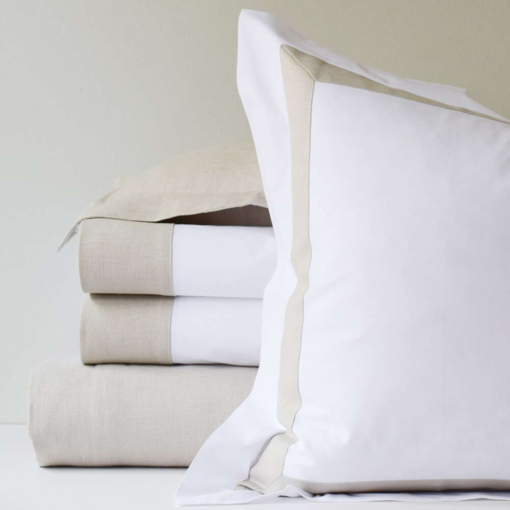 Sham: Flanged, Piped.100% Hankerchief Linen.