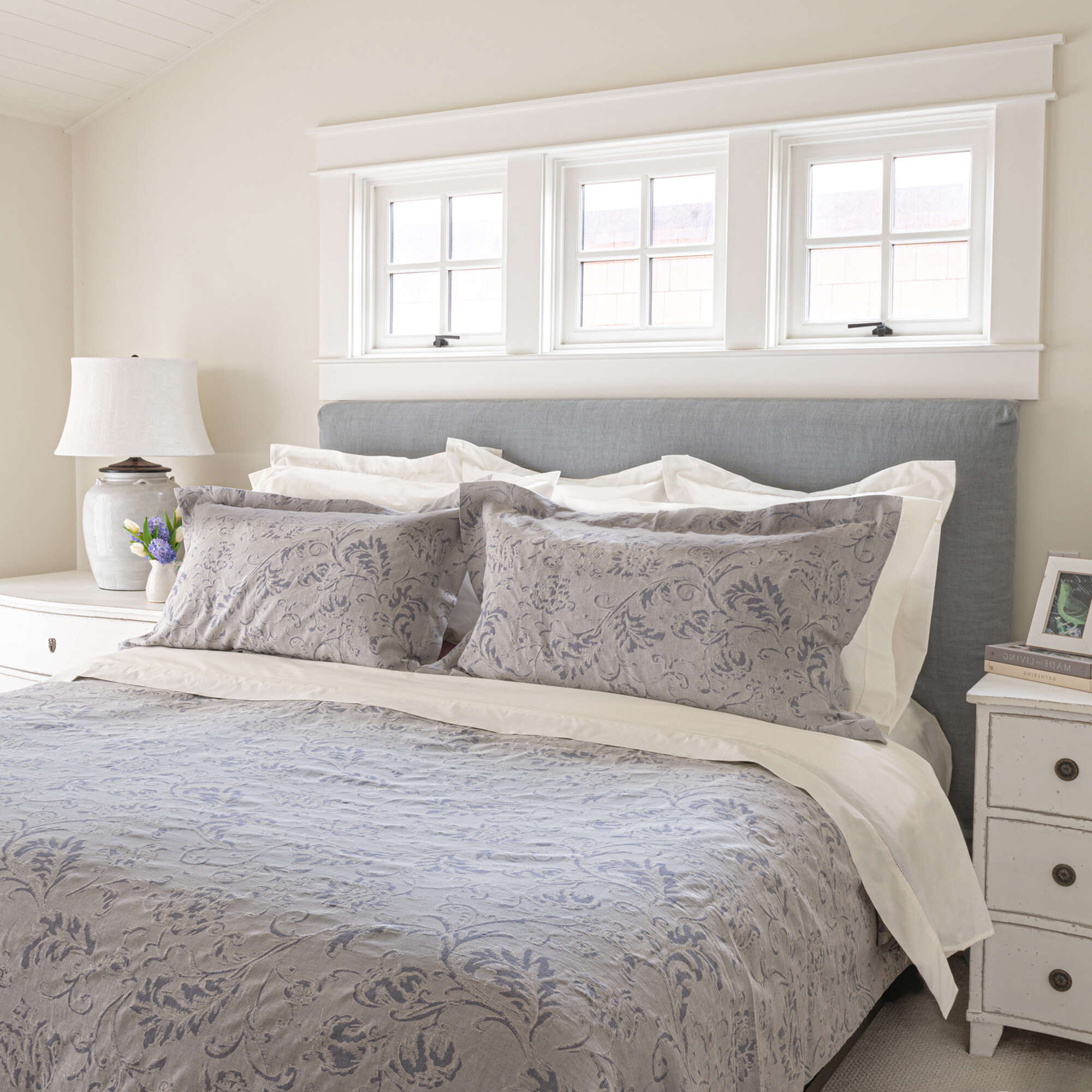 Duvet Cover: Backed in Venice Cream or Pattern overall. 2" flange. Back button band.