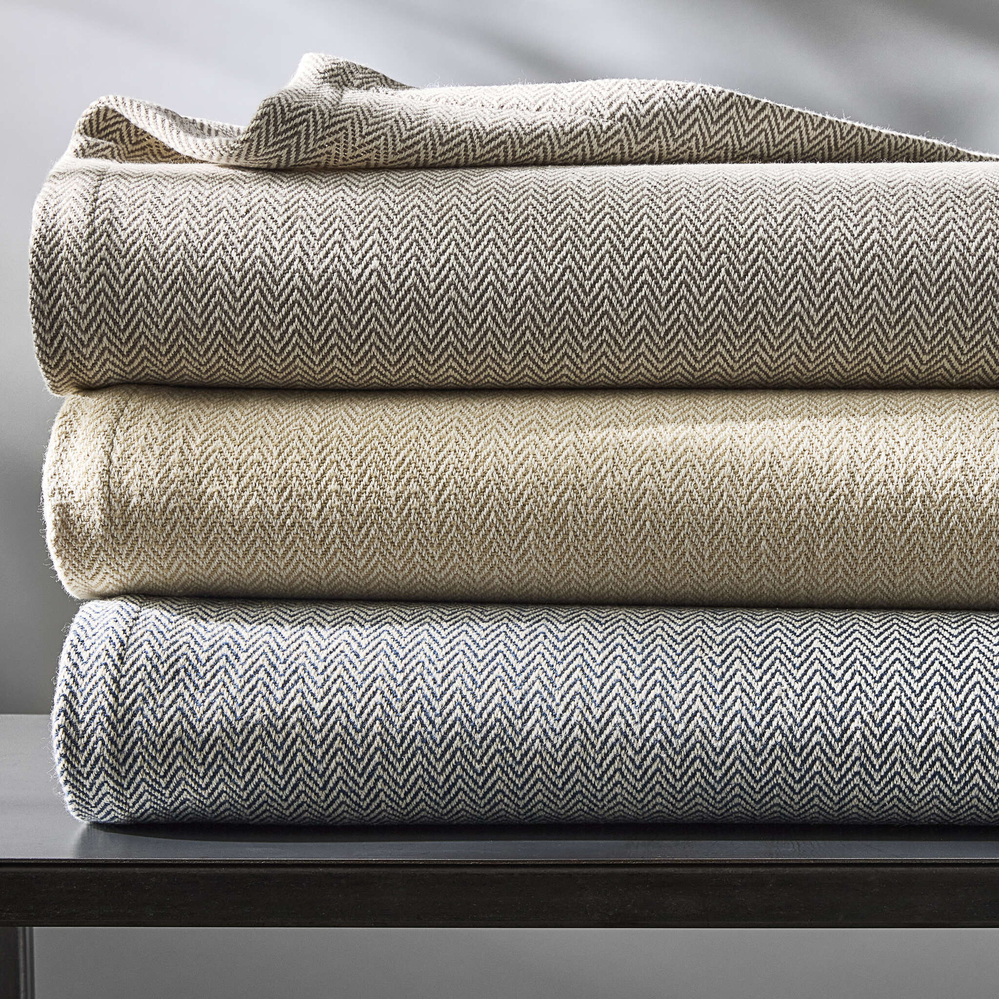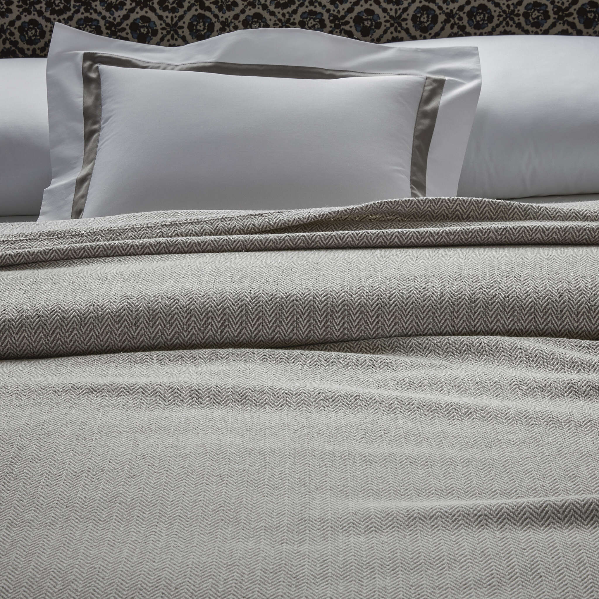 The Avalon Blanket offers a refined, minimal look with its intricate chevron weave and softly tailored finish, crafted from 100% premium cotton. It's woven in delicate tonal hues on a soft off-white base and finished with a one-inch hem. With its smooth hand and versatile weight, Avalon provides year-round comfort, whether layered beneath a duvet or draped gracefully at the foot of the bed.