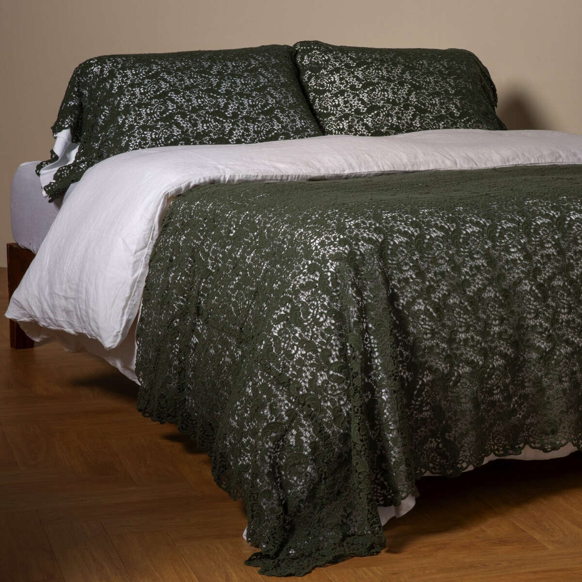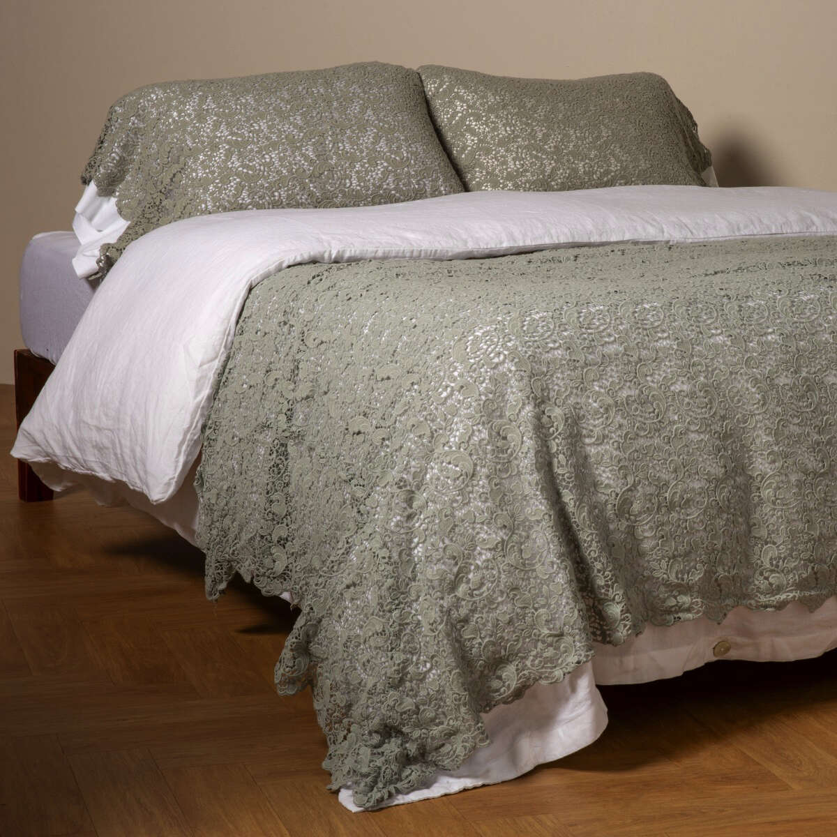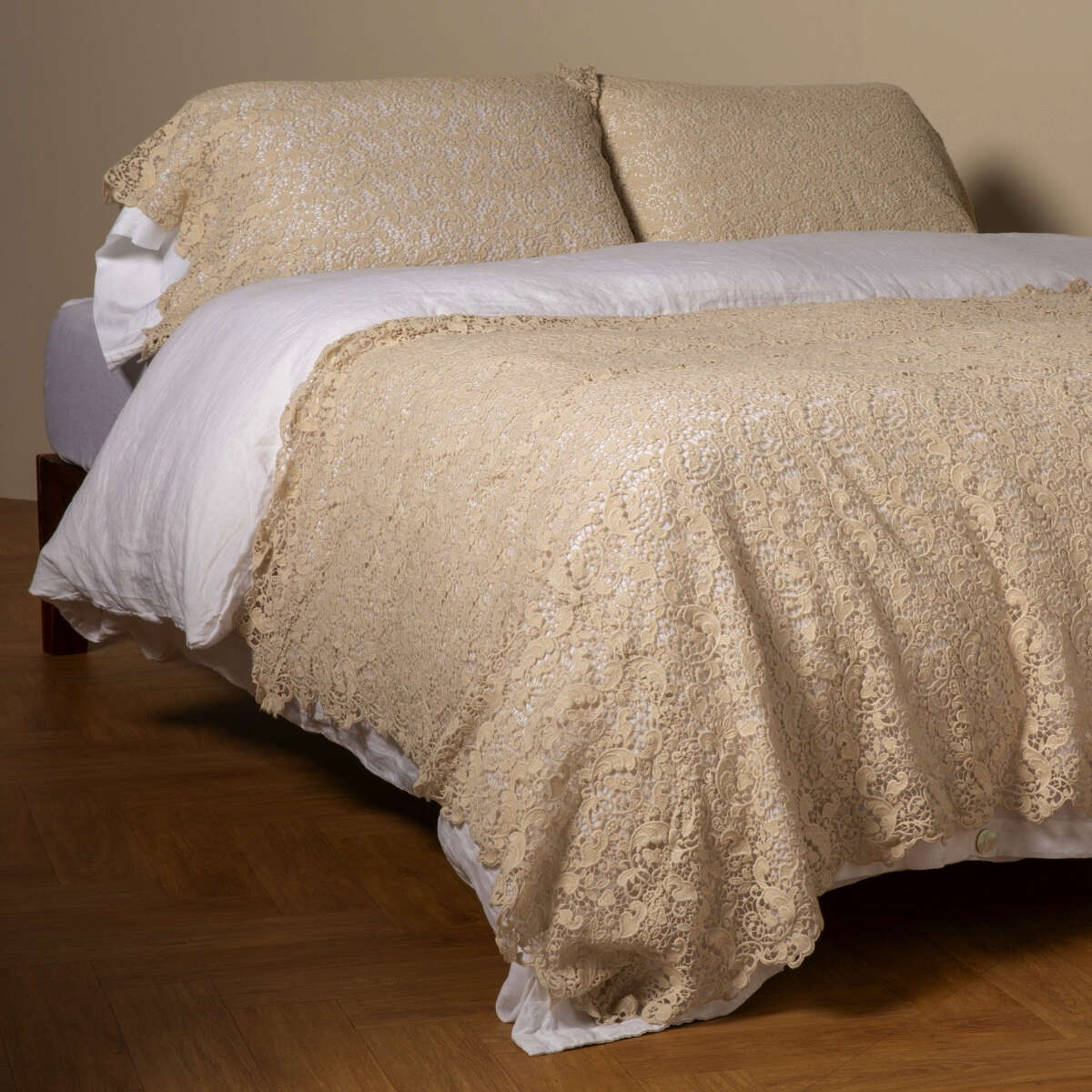 The Allora Bed Scarf is an eye-catching piece for the foot of the bed. Featuring a splendid all-over lace pattern and scalloped edges, this layer adds a feminine touch of classic grace in all of our hand-mixed colors. Layered with other colors, fabrics, and textures, this throw is a declaration of a well-dressed bed.