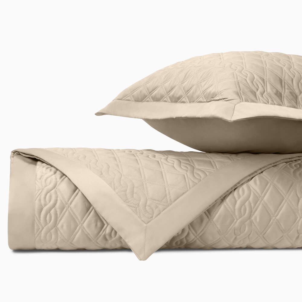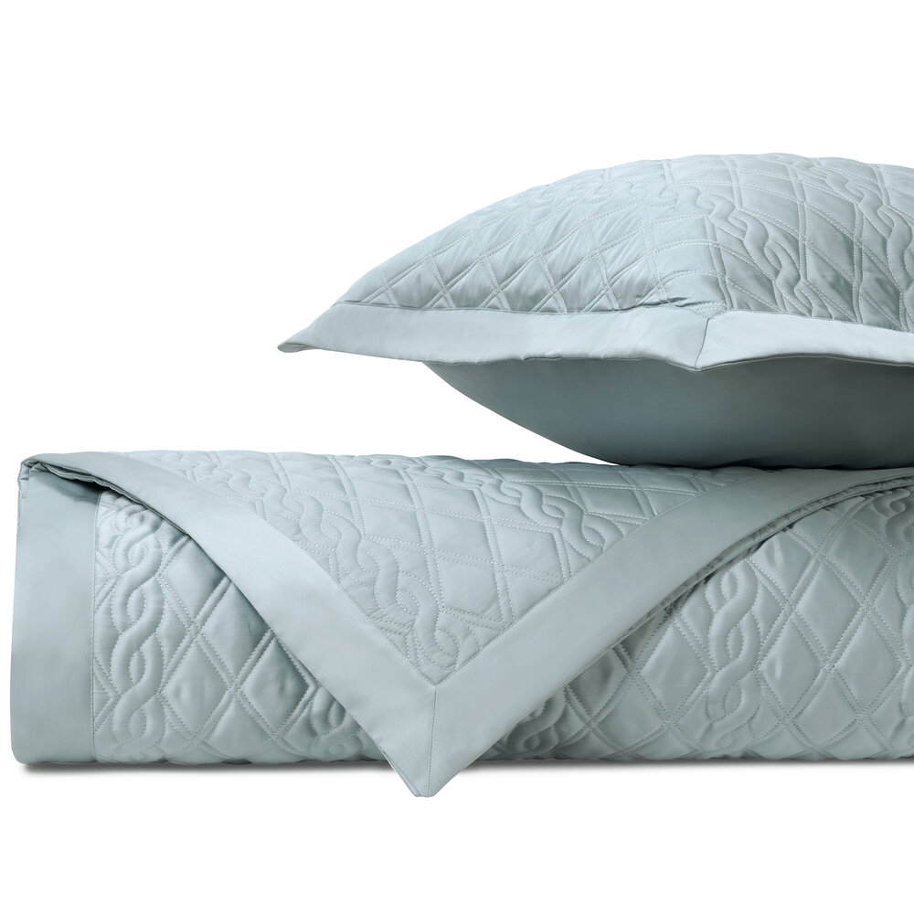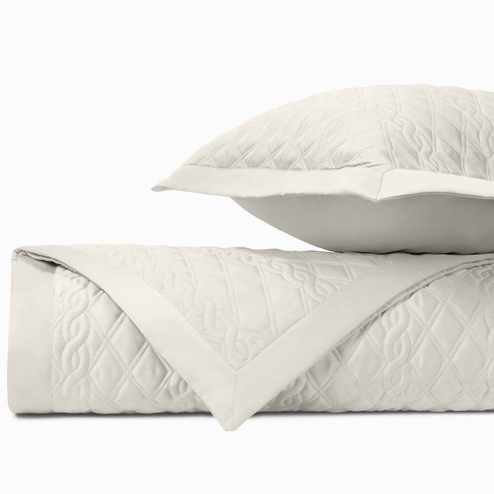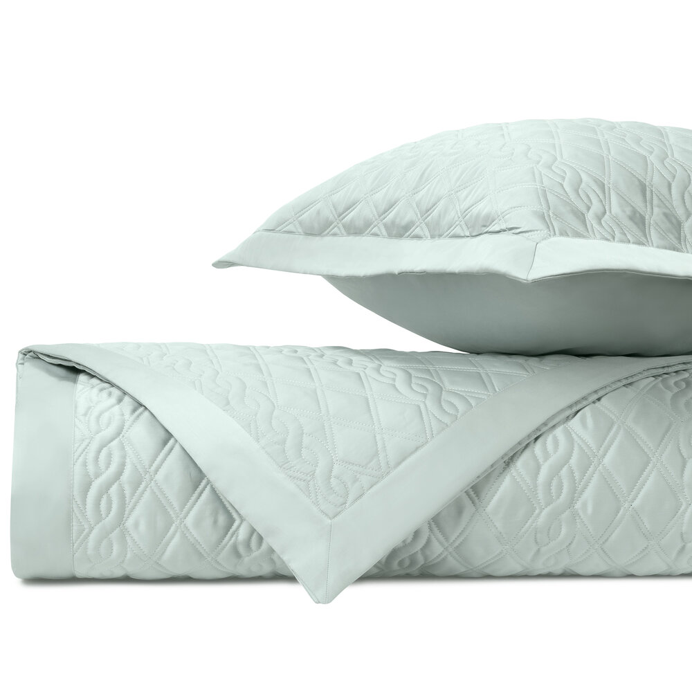 Coverlet: Our classic royal sateen quilted coverlets, in Abbey pattern, are finished with a solid 2" border.