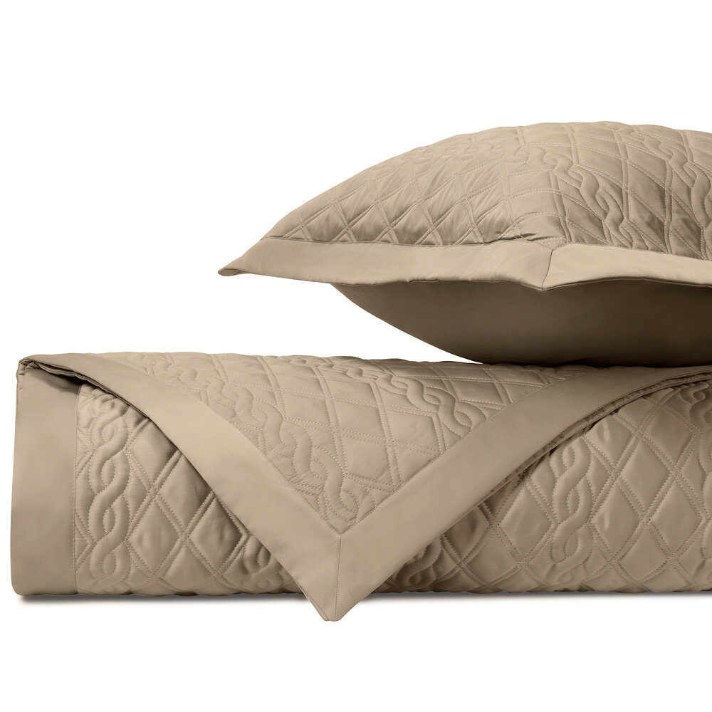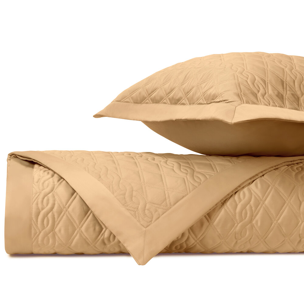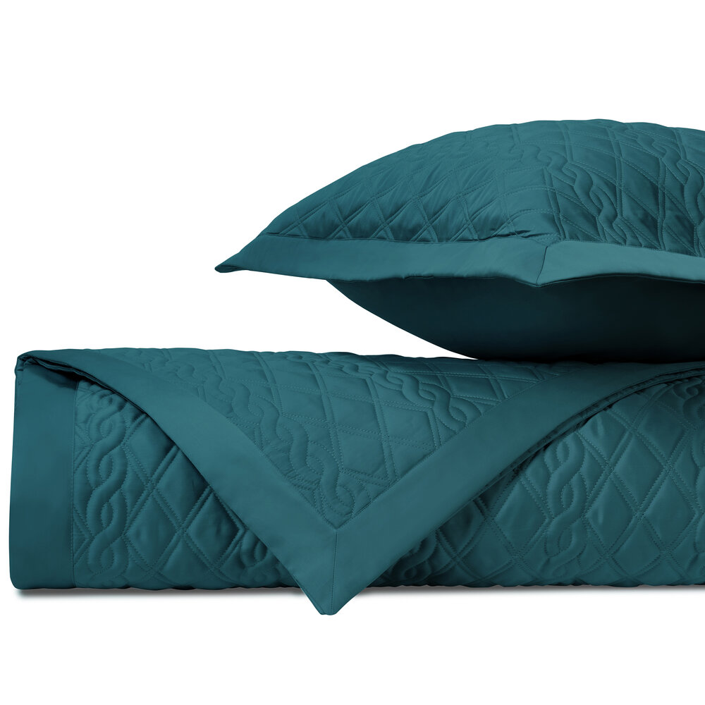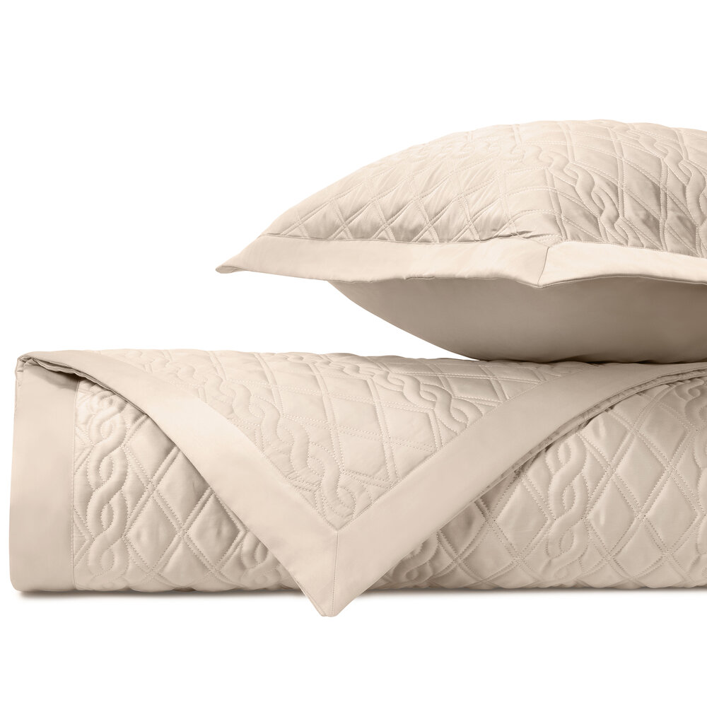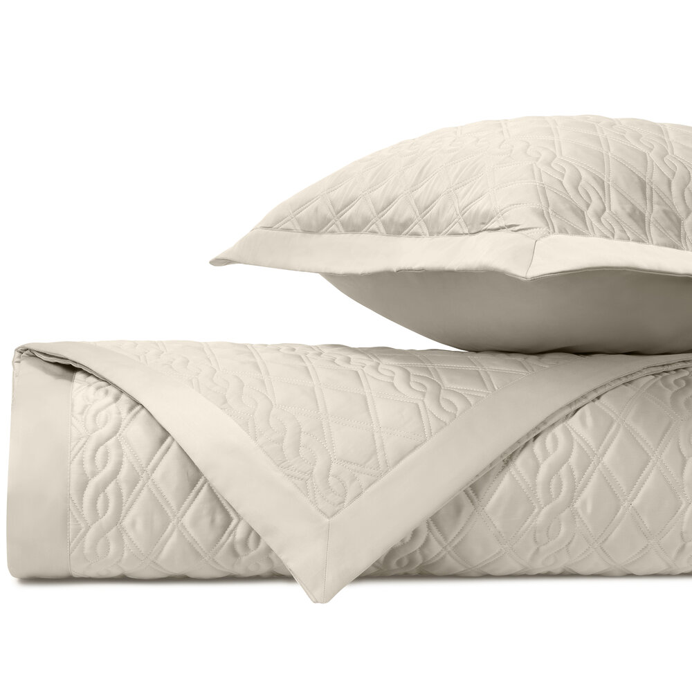 Coverlet: Our classic royal sateen quilted coverlets, in Abbey pattern, are finished with a solid 2" border.