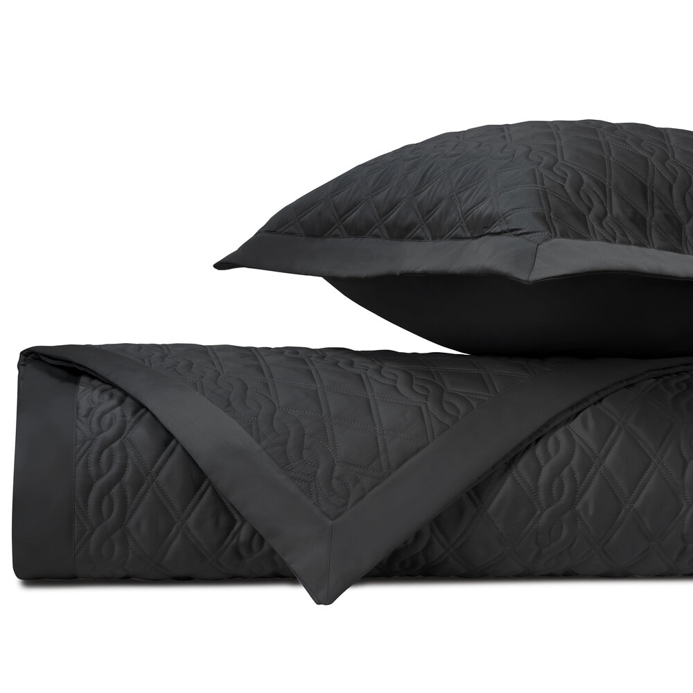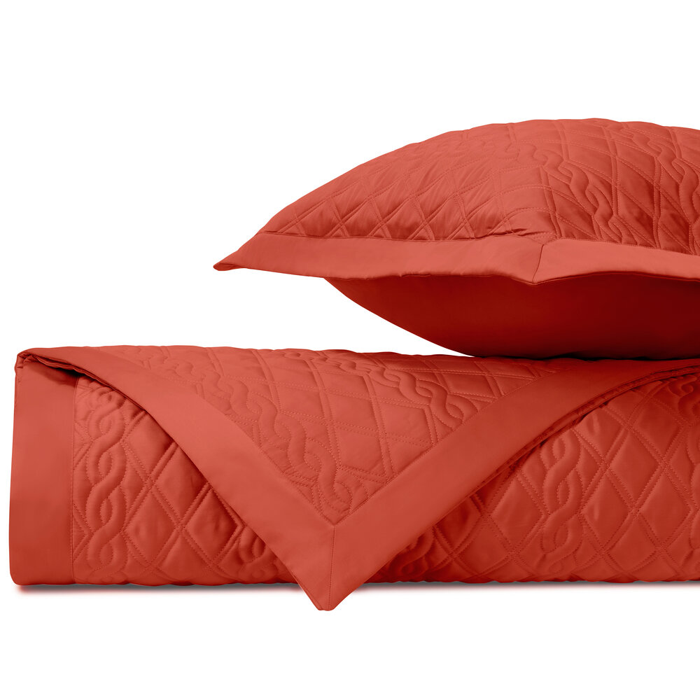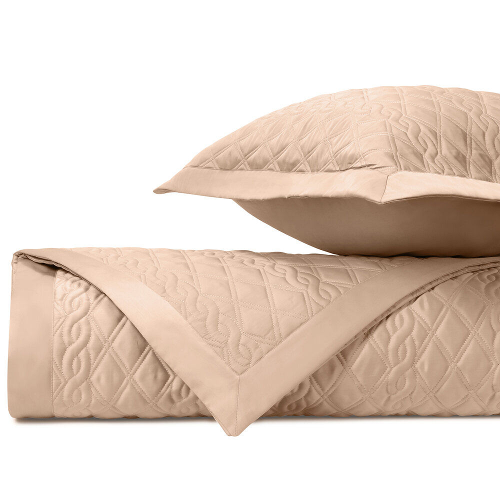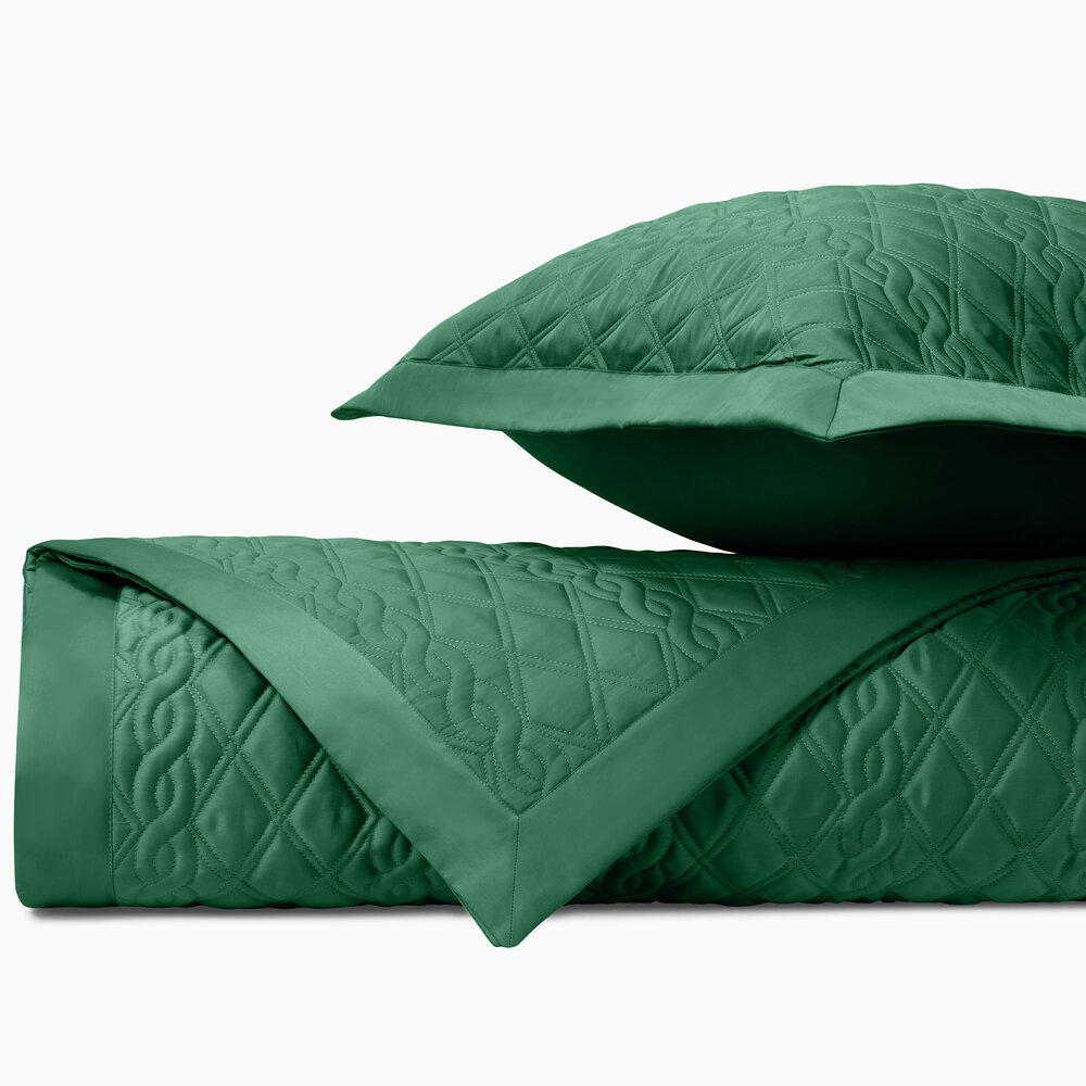 Coverlet: Our classic royal sateen quilted coverlets, in Abbey pattern, are finished with a solid 2" border.