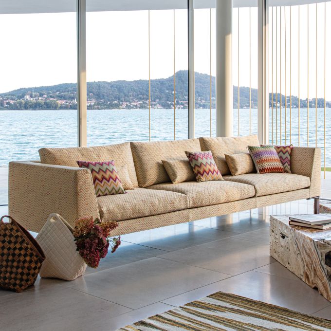 The cheerful juxtaposition of neutral tones and bright colours characterises the chevron pattern of the Agadir 40x40 cm square cushion. This is just the furnishing accessory you needed to give a vibrant touch to all the rooms of your home.