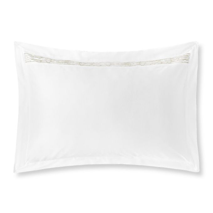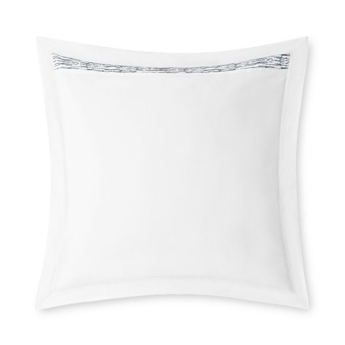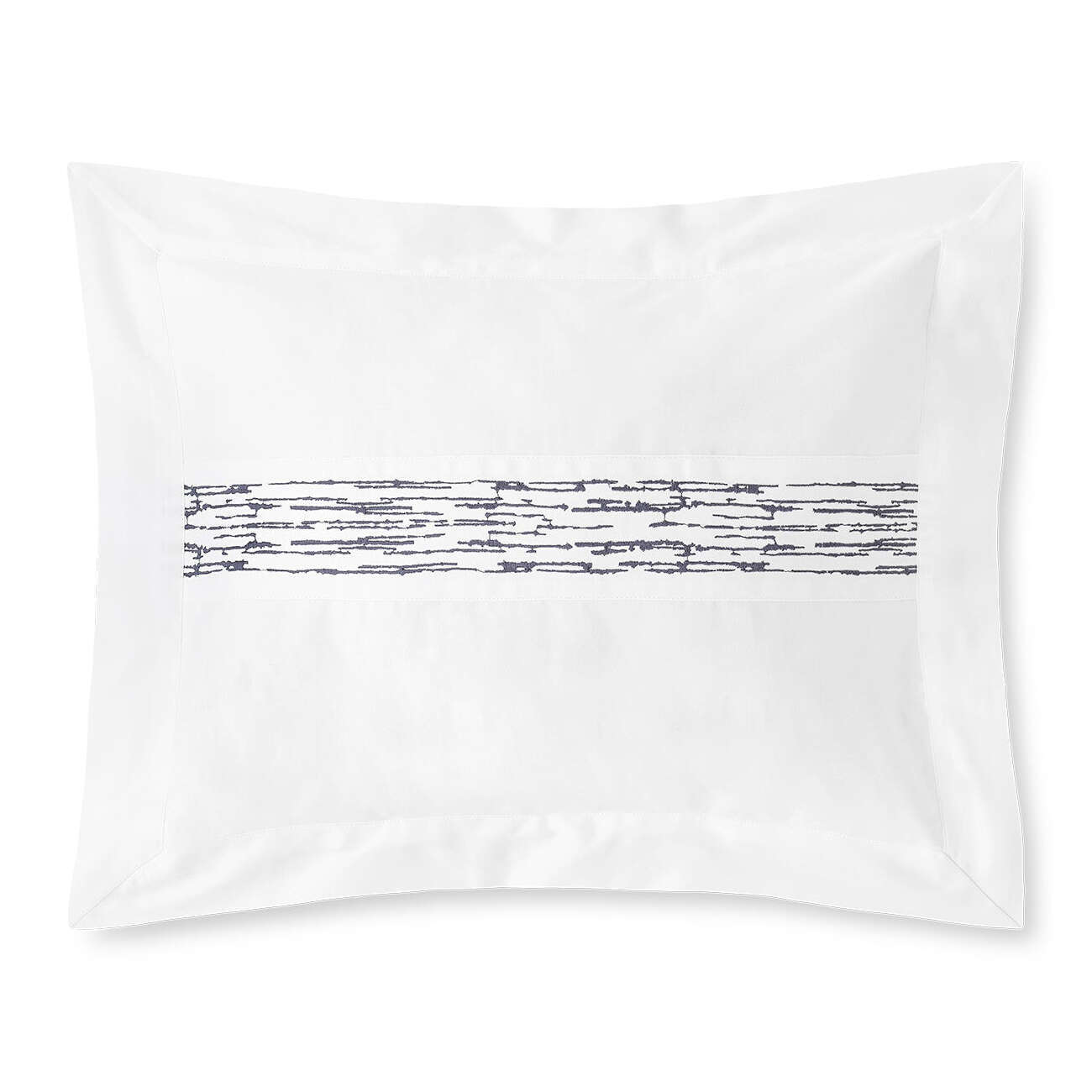 Sham with applied embroidered border at the top and flange on four sides.