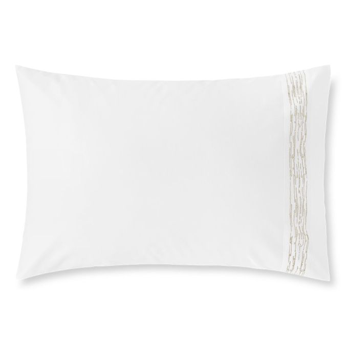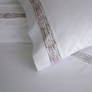 Pillowcase with applied embroidered border at one side.