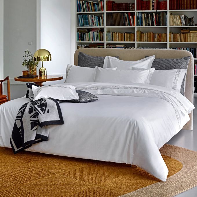 Flat Sheet, Duvet Cover with applied embroidered border at the top.