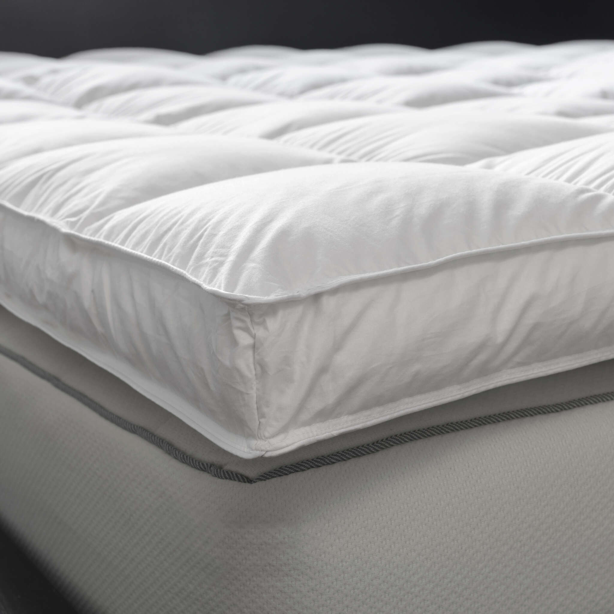 Indulge in the luxury of a down filled mattress Pad. Fluffy and comfortable, our down mattress pad will add softness, comfort and protection to your mattress. This mattress pad features an elasticized spandex skirt that fits up to 20" thick mattresses.