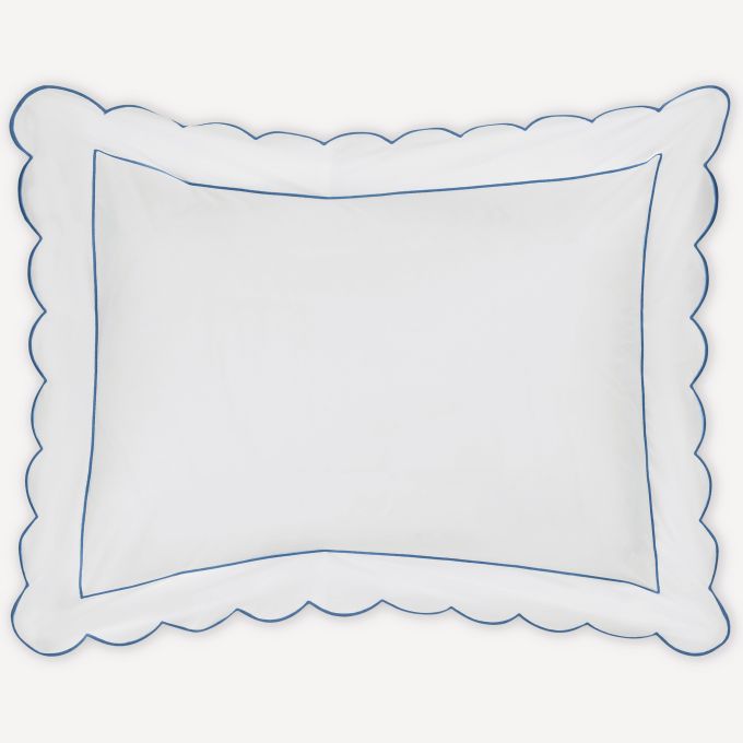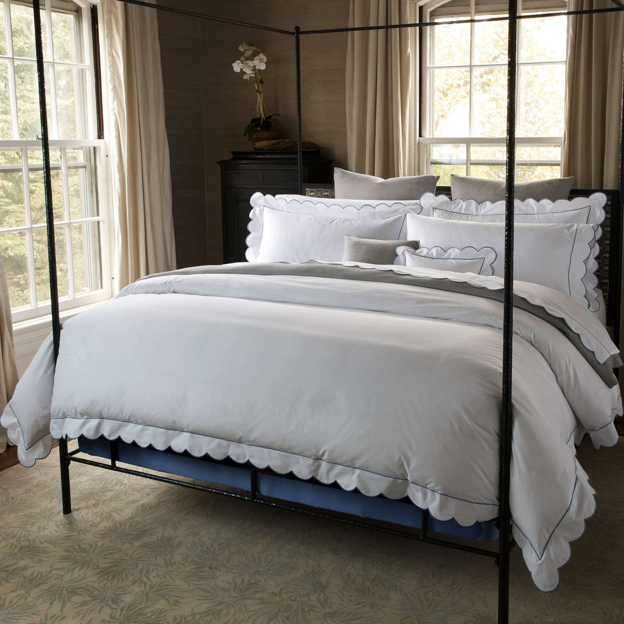 At once feminine and tailored, our crisp white 500 thread count Luca Egyptian cotton percale sheeting is adorned with oversize scallop detail and subtle satin stitching. It’s flirty and fun while maintaining a classic, finished bed look for any room.