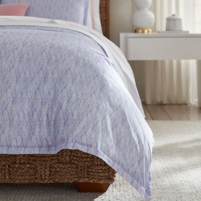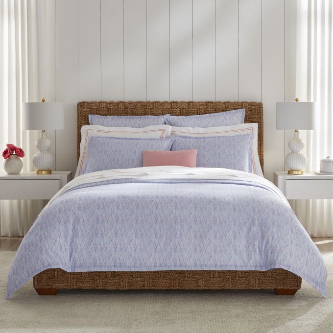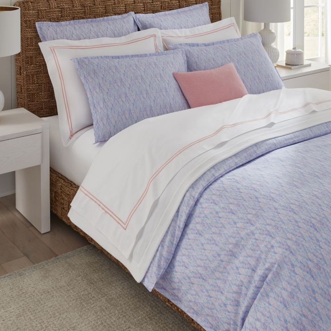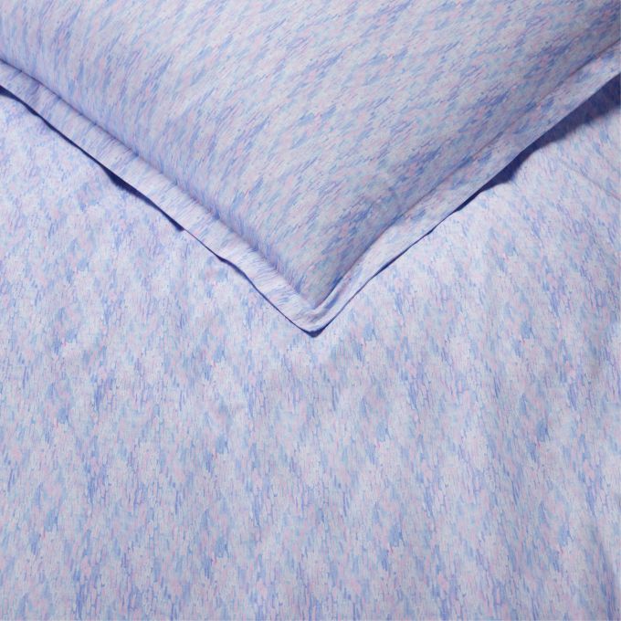 An ornate bedding collection woven in Italy from whimsical coloration, Alessia’s printed percale breathes new life into the timeless herringbone pattern. This reimagined interpretation unfurls as a mesmerizing canvas, where each brushstroke—hand-painted and imbued with an impressionist feel—weaves a story of artistry and elegance.