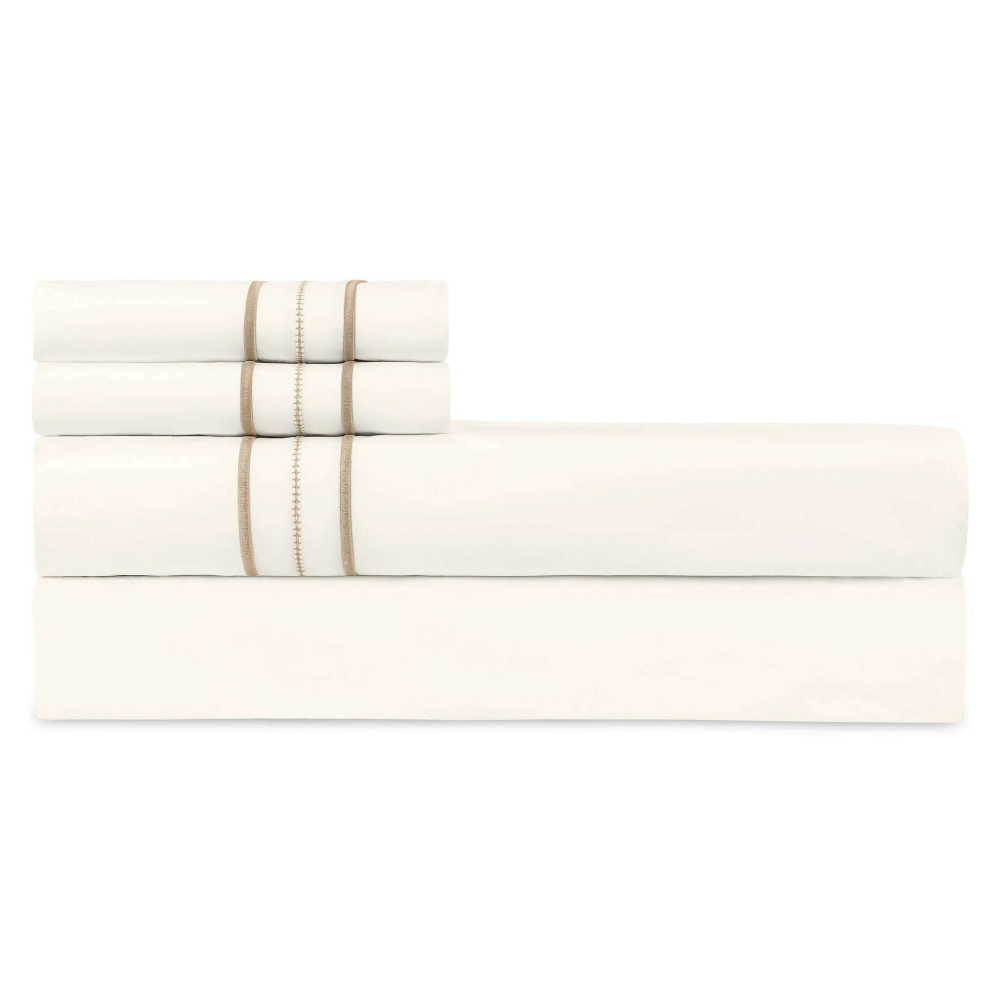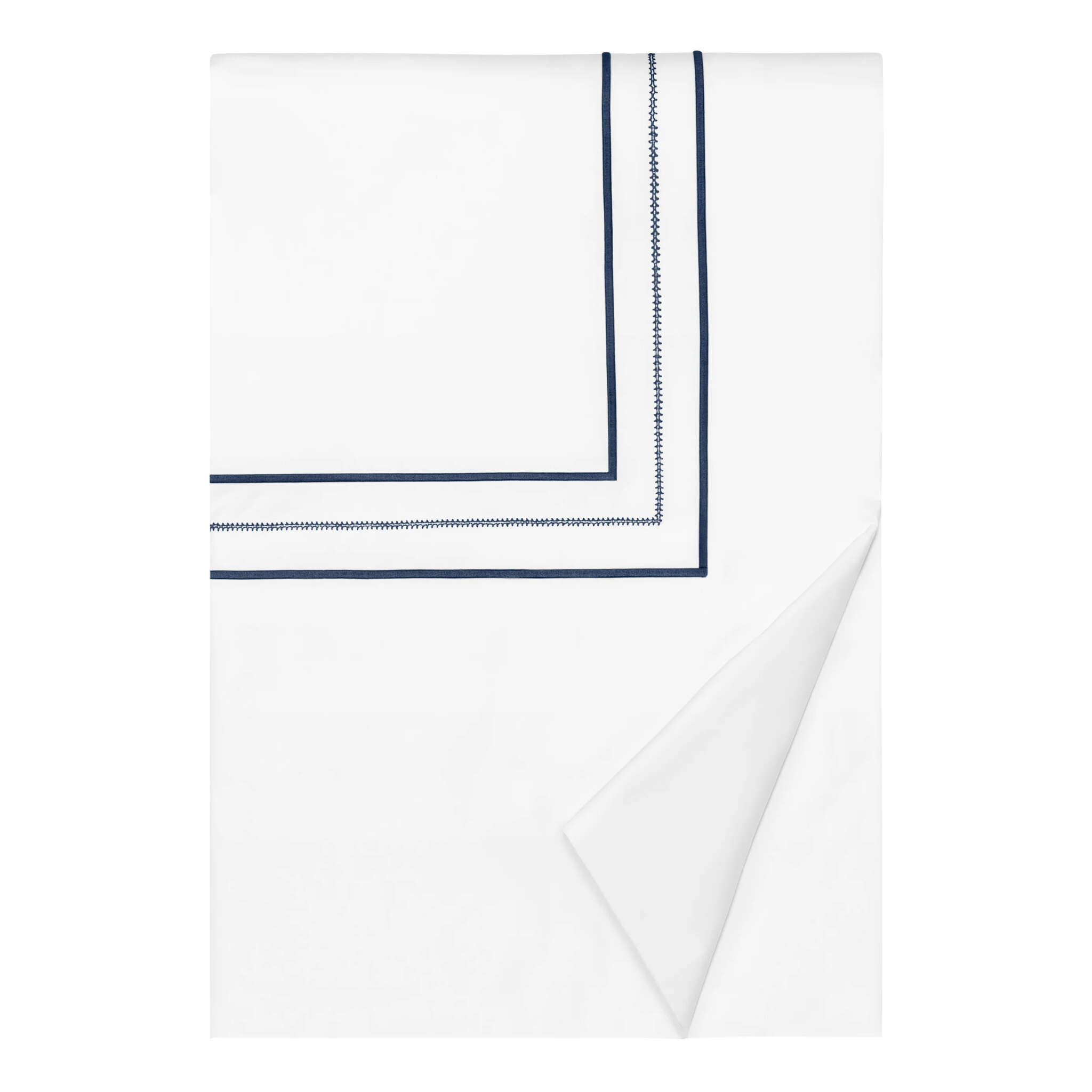 Triad Flat Sheets are designed with a solid percale body and a monochrome trio of satin stitch - hemstitch - satin stitch along the Euro return.