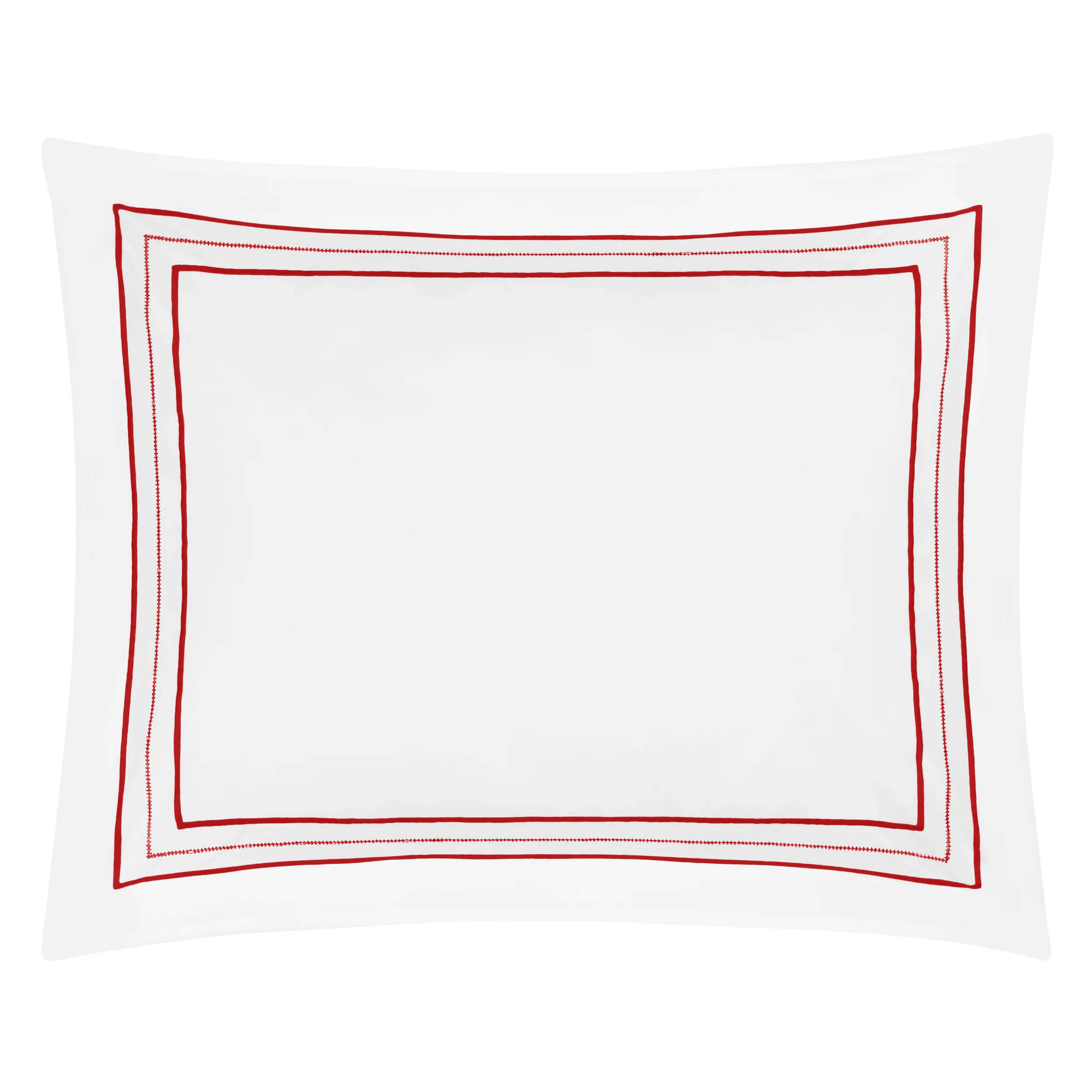 Triad Shams are designed with a solid percale body and a monochrome trio of satin stitch - hemstitch - satin stitch along the flange hem.