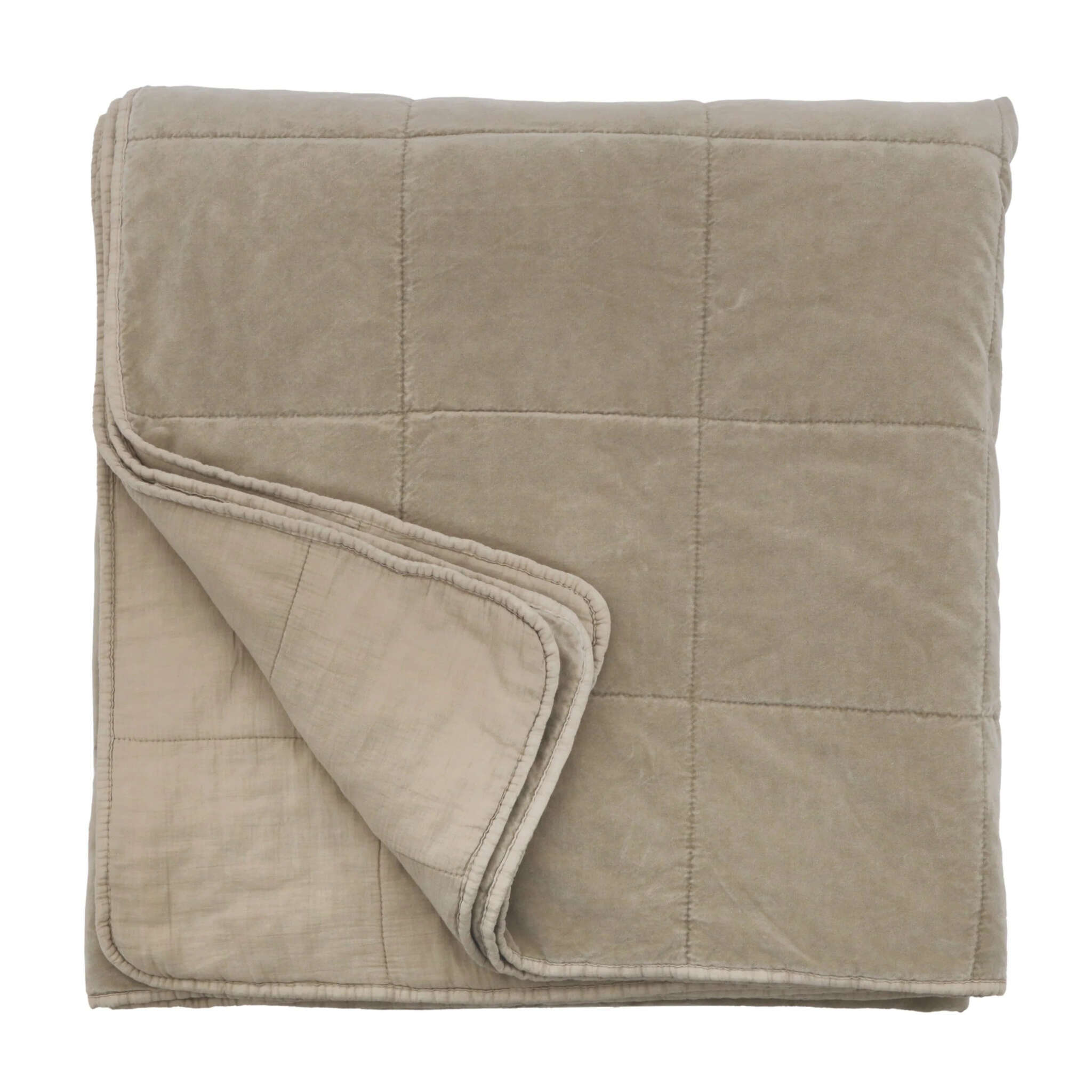 Stone washed for a soft hand feel, the Amsterdam Throw is a cotton velvet with a cotton backing. It features a quilted square pattern for a simple and modern look.