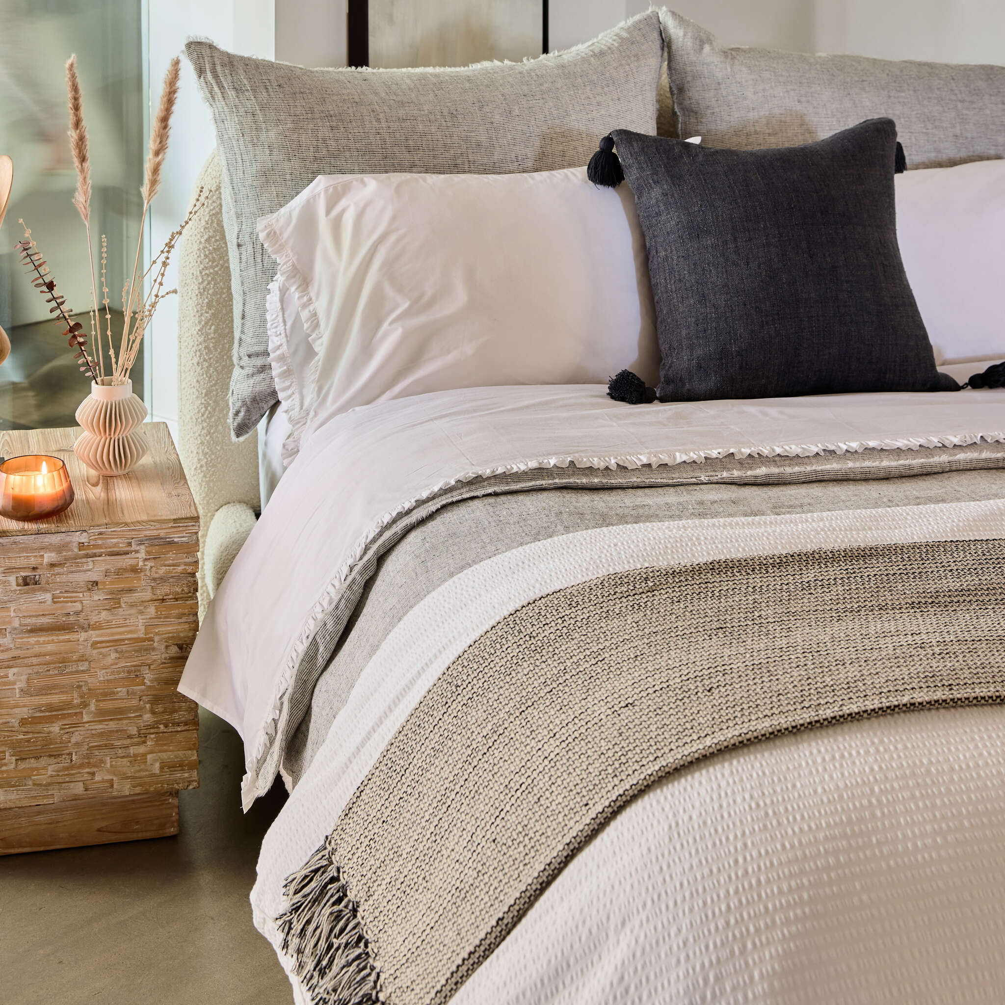 Available in calming hues, the Julian oversized throw complements your space with its earthy tones. Its tasseled ends add a playful yet sophisticated detail that make each throw unique.