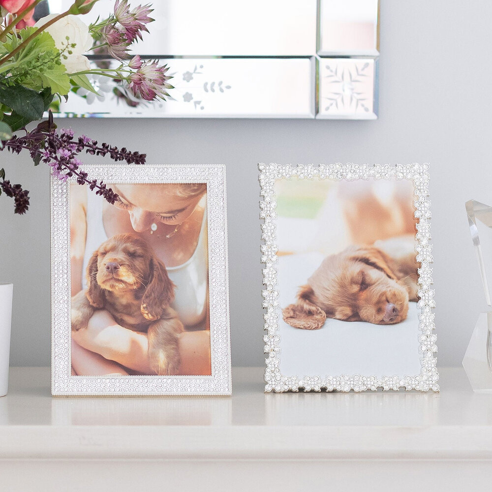 Our Diamante Crystal Frame is incredibly pretty and features a design of clear crystals encased in silver plate beading.