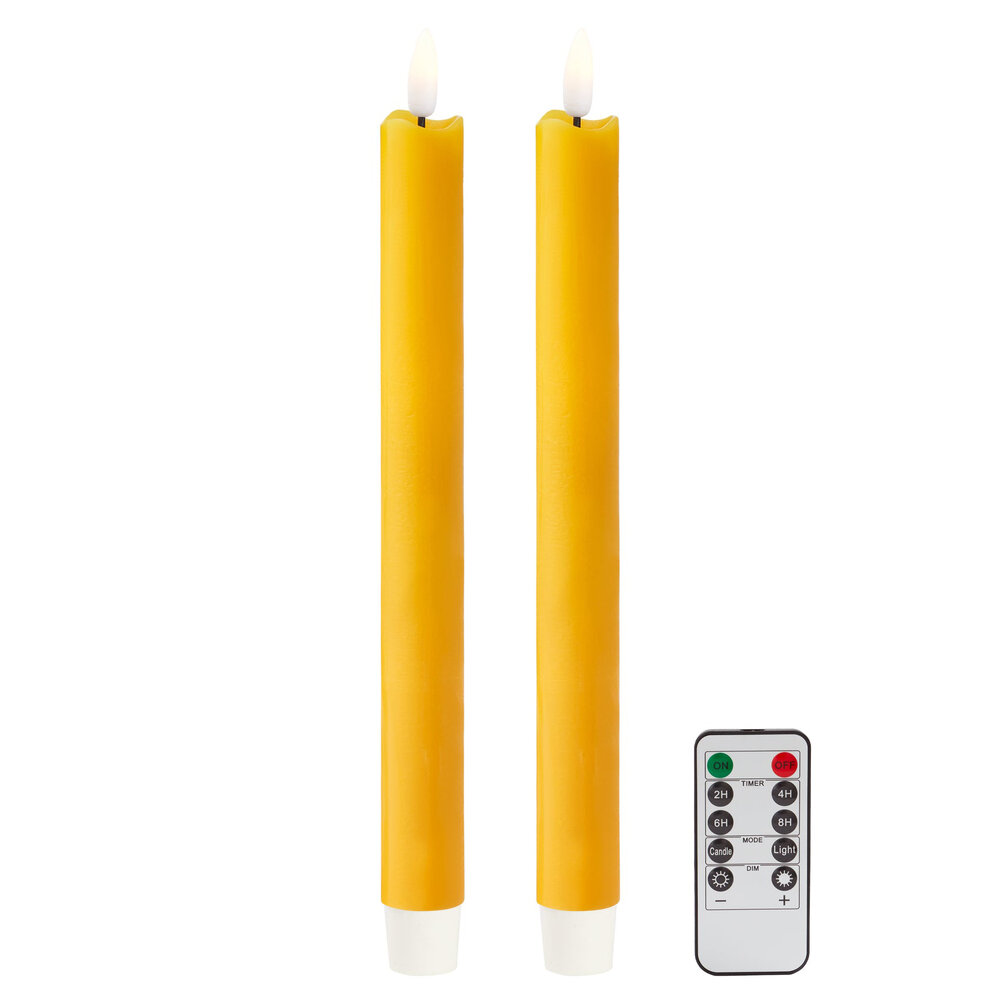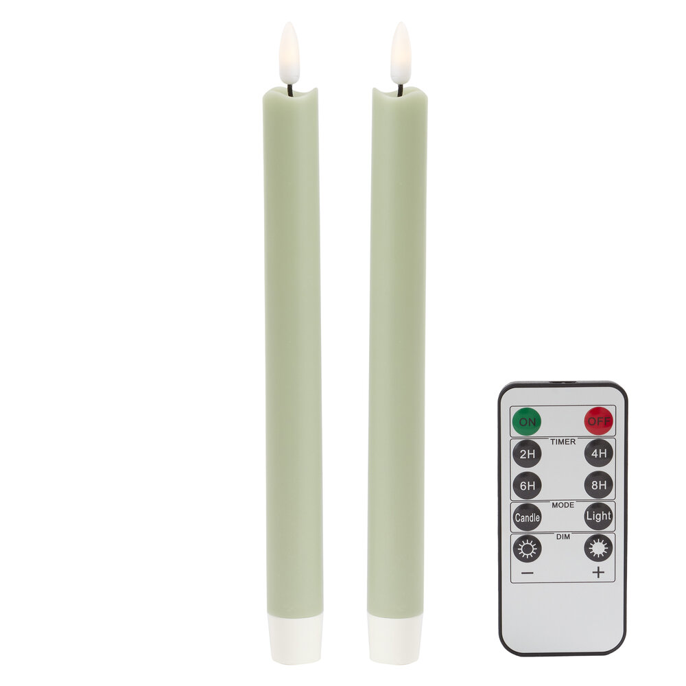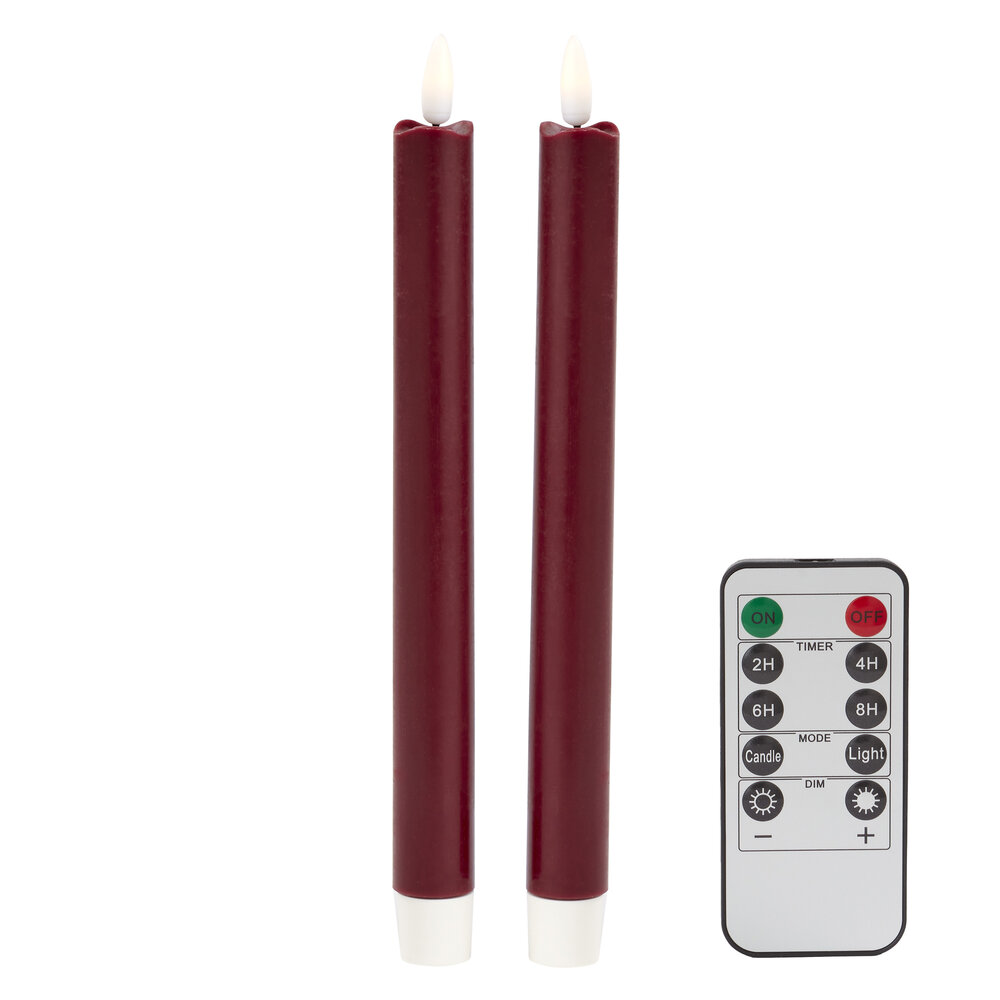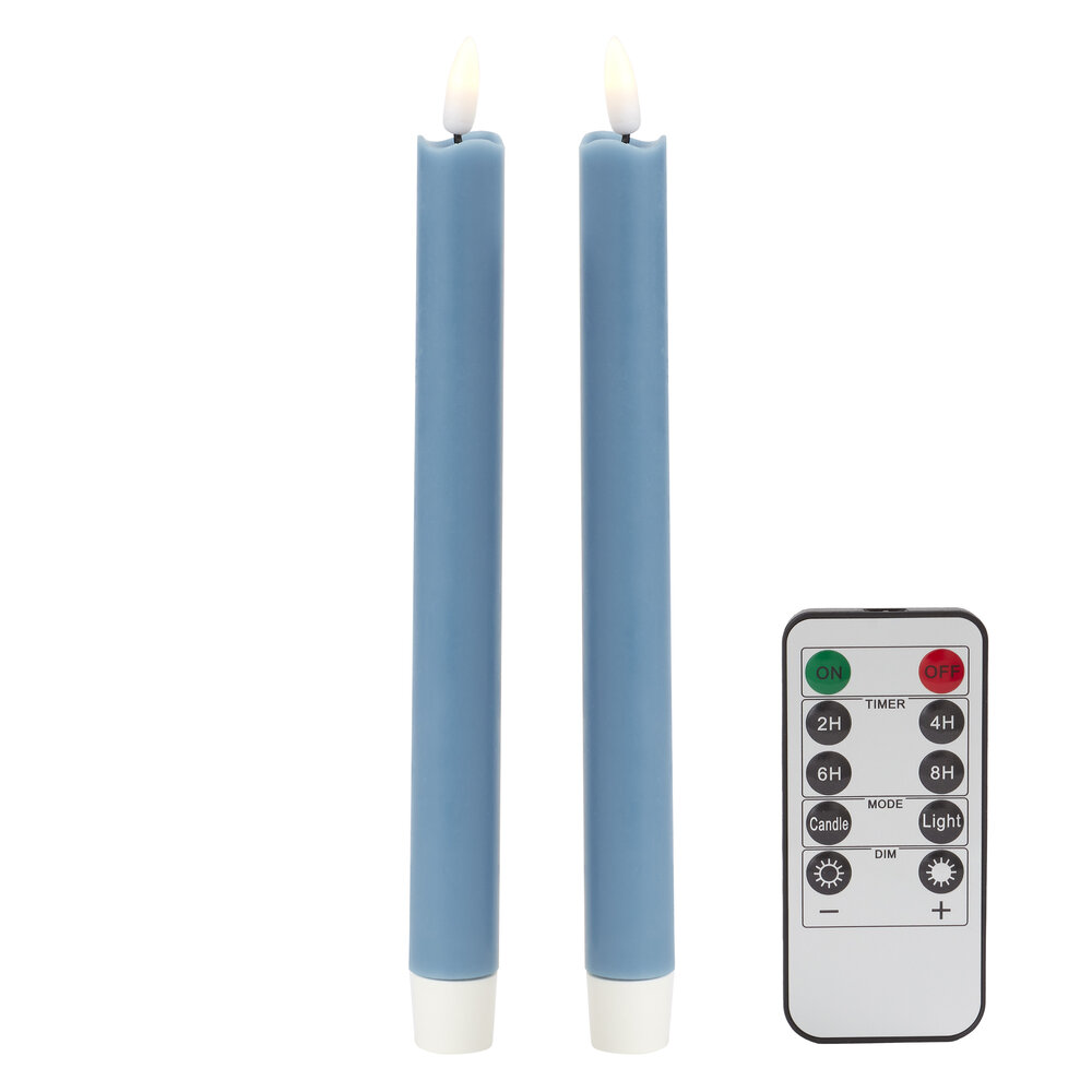 Our 23cm LED battery powered wax Candles. Colour matched with our lacquered bobbin candlesticks and made with real wax. Supplied with batteries and a remote control, they come beautifully gift-boxed as a pair. Select the flicker mode for a subtle twinkle, eliminating concerns about wax spills or wind gusts.