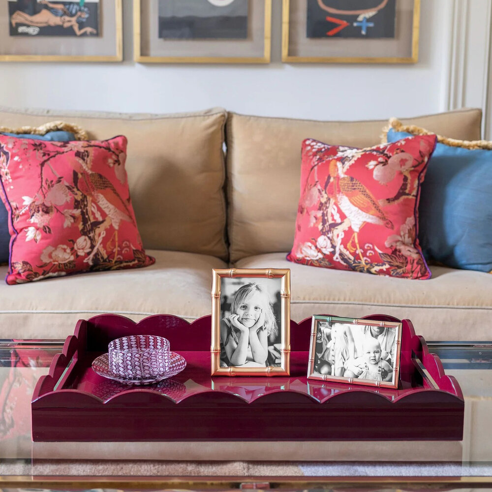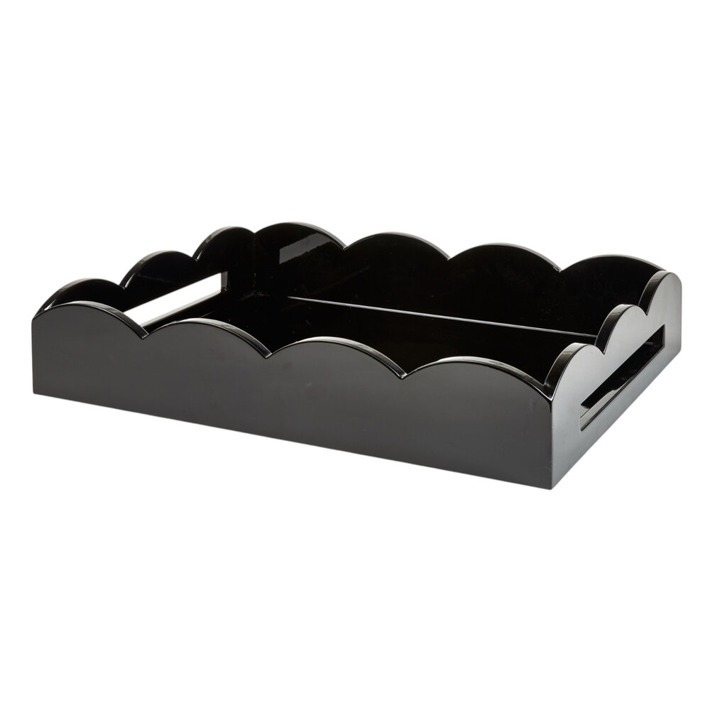 This lacquer Scalloped Tray boasts a playful scalloped edge and deep straight sides.