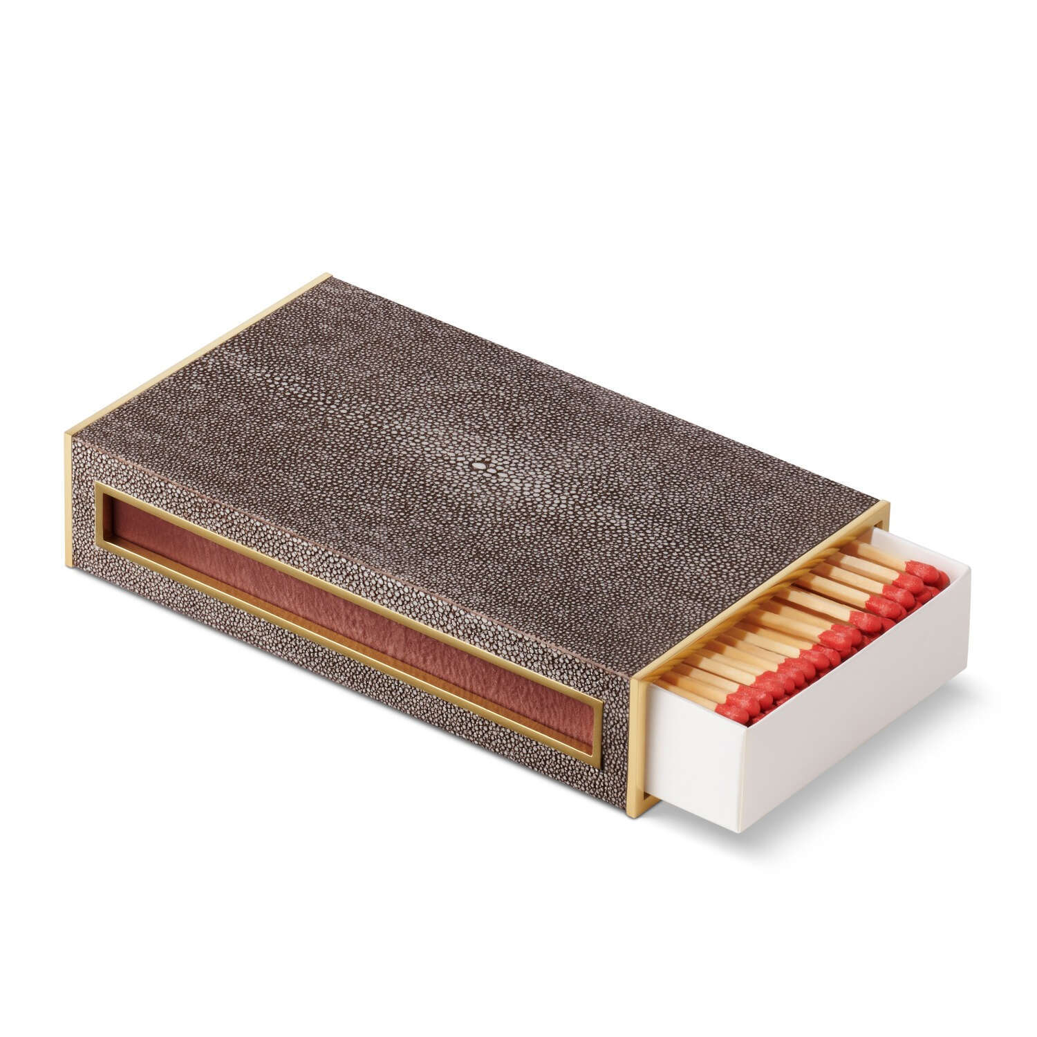 This beautiful Shagreen sleeve comes with an AERIN-branded match box and includes an opening to reveal the interior strike card. It looks beautiful on a tabletop beside one of the scented candles from the AERIN collection.