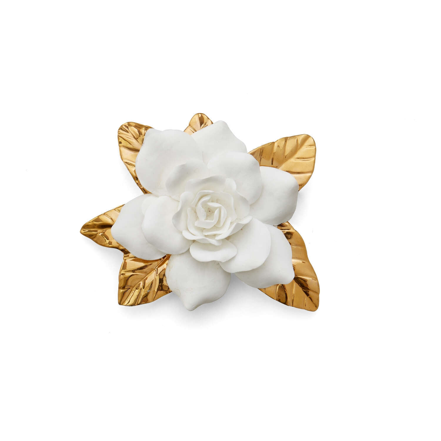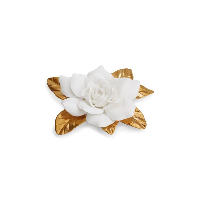 This delicate porcelain flower is the perfect object to gift to a loved one. Hand cast and embellished with 18k gold, it is a timeless bloom that looks beautiful on a vanity or tabletop.