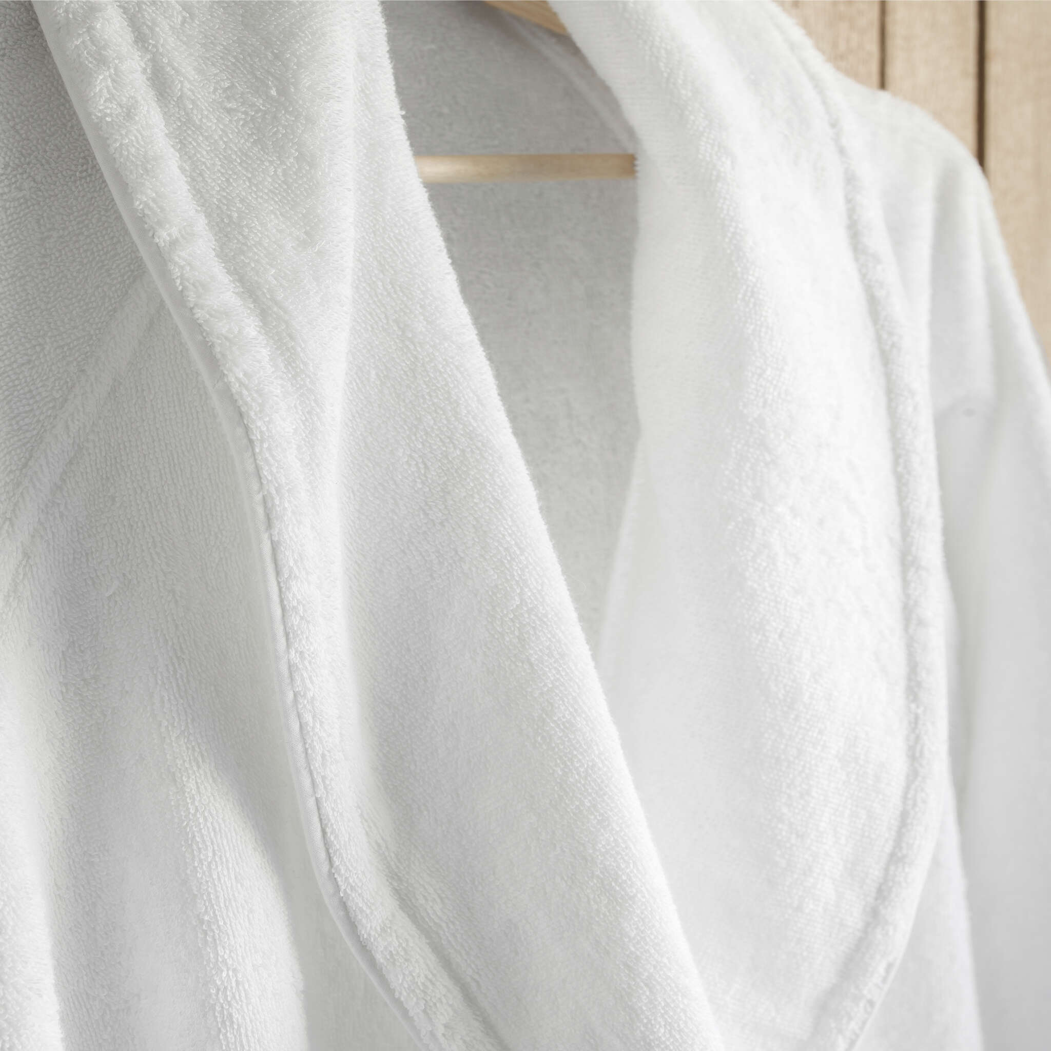 ESS-CALE offers a luxurious bathrobe, comfortable and soft. Its cotton terry frabic provides a highly absorbent capacity. The bathrobe is made with a shawl collar, cotton piping at the collar and the cuff, 2 invisible side pockets and on the sides keeper.
