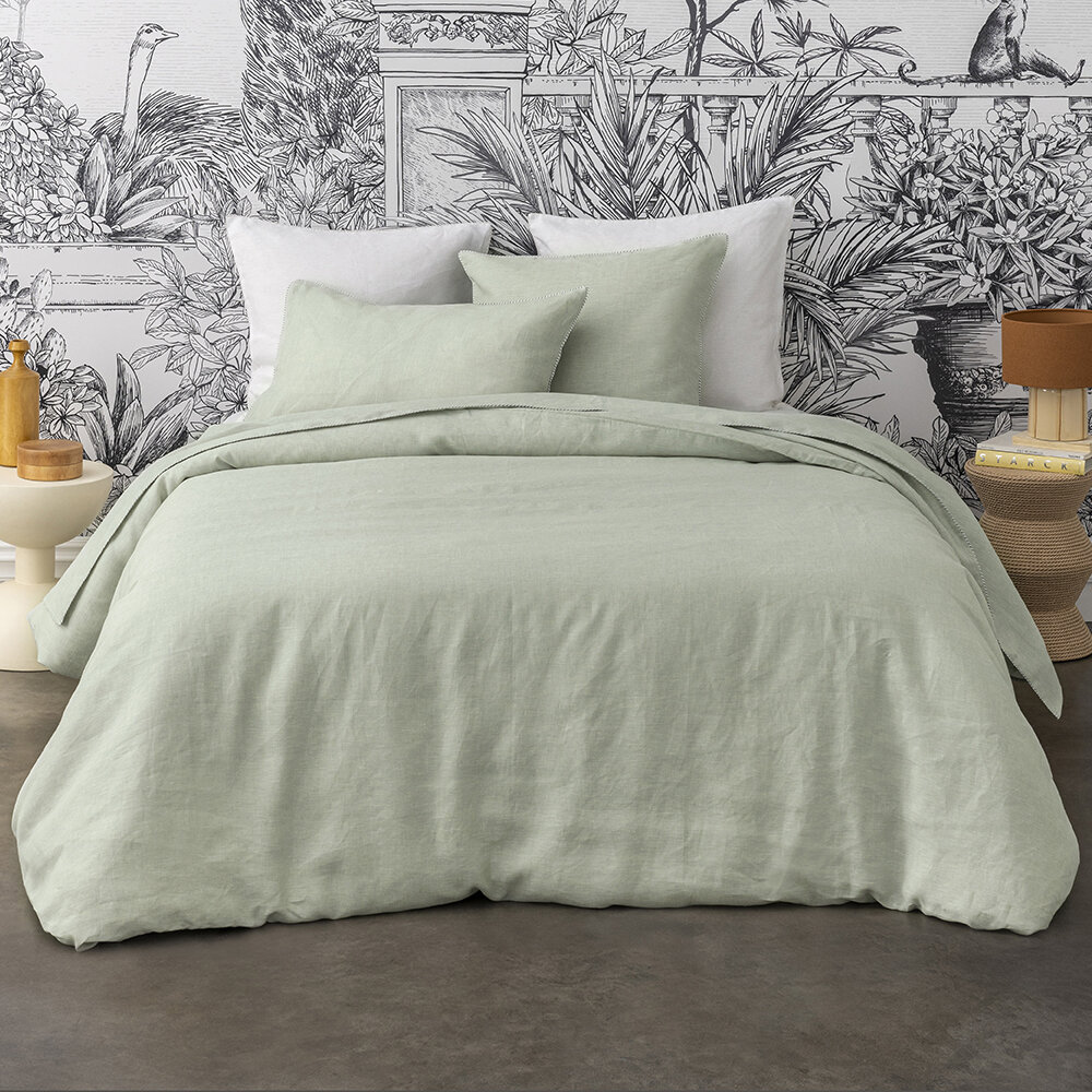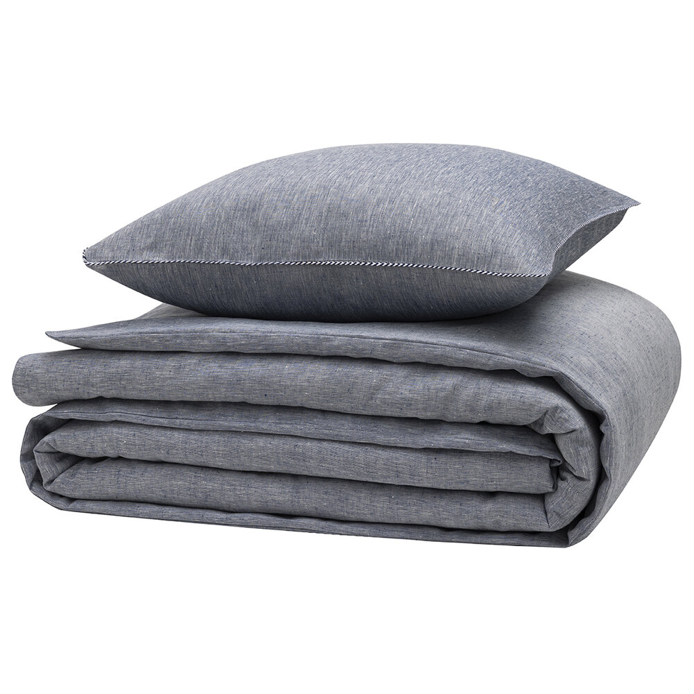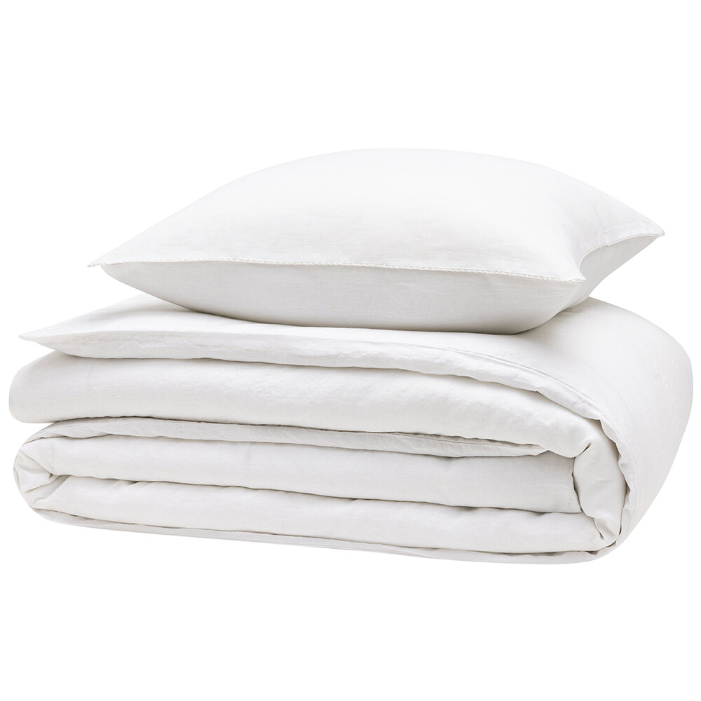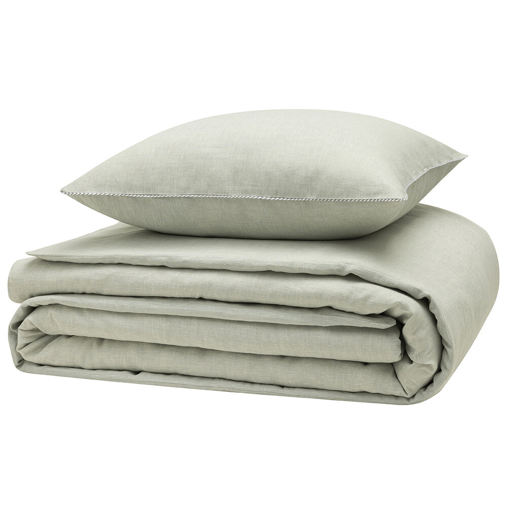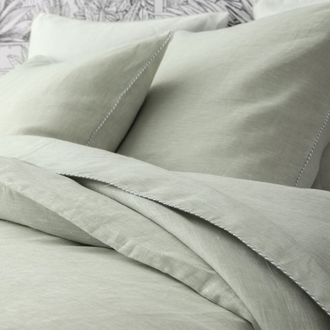 Refined finishes: piped pillowcases, button closure on the duvet cover.