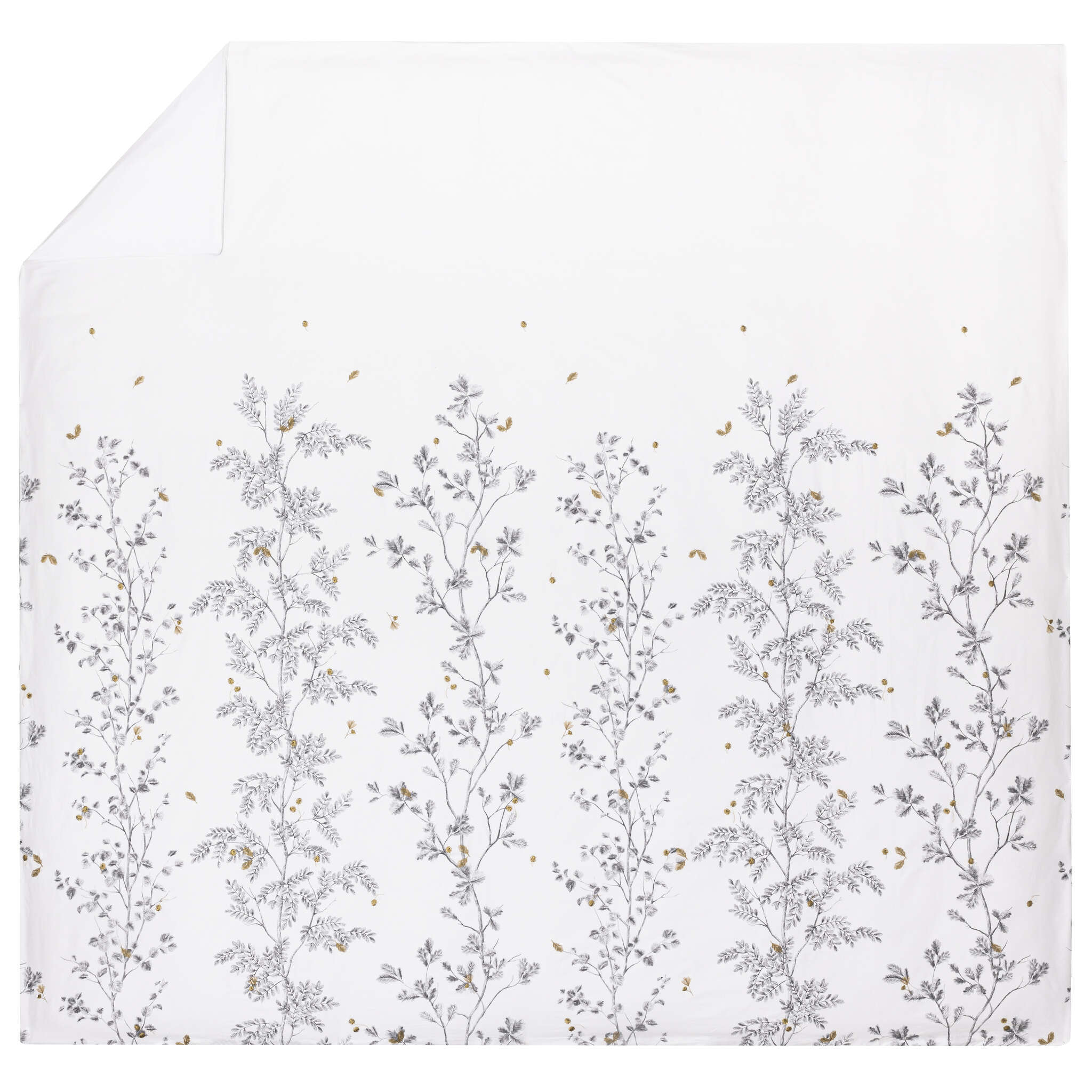 Duvet Cover: "French hedge garden" printed body, allover "leaves" embroidery, reversing to plain dye sateen.