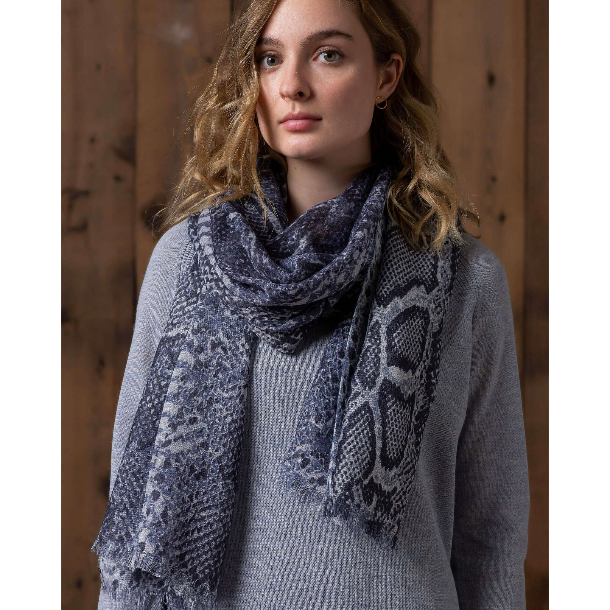 The Alicia Adams Alpaca Viper Scarf is patterned with a snakeskin print. Made from our favorite baby alpaca / silk blend, it's the perfect weight for coastal climates as well as evenings in spring and summer. This lightweight alpaca wrap makes a divine gift for any occasion.