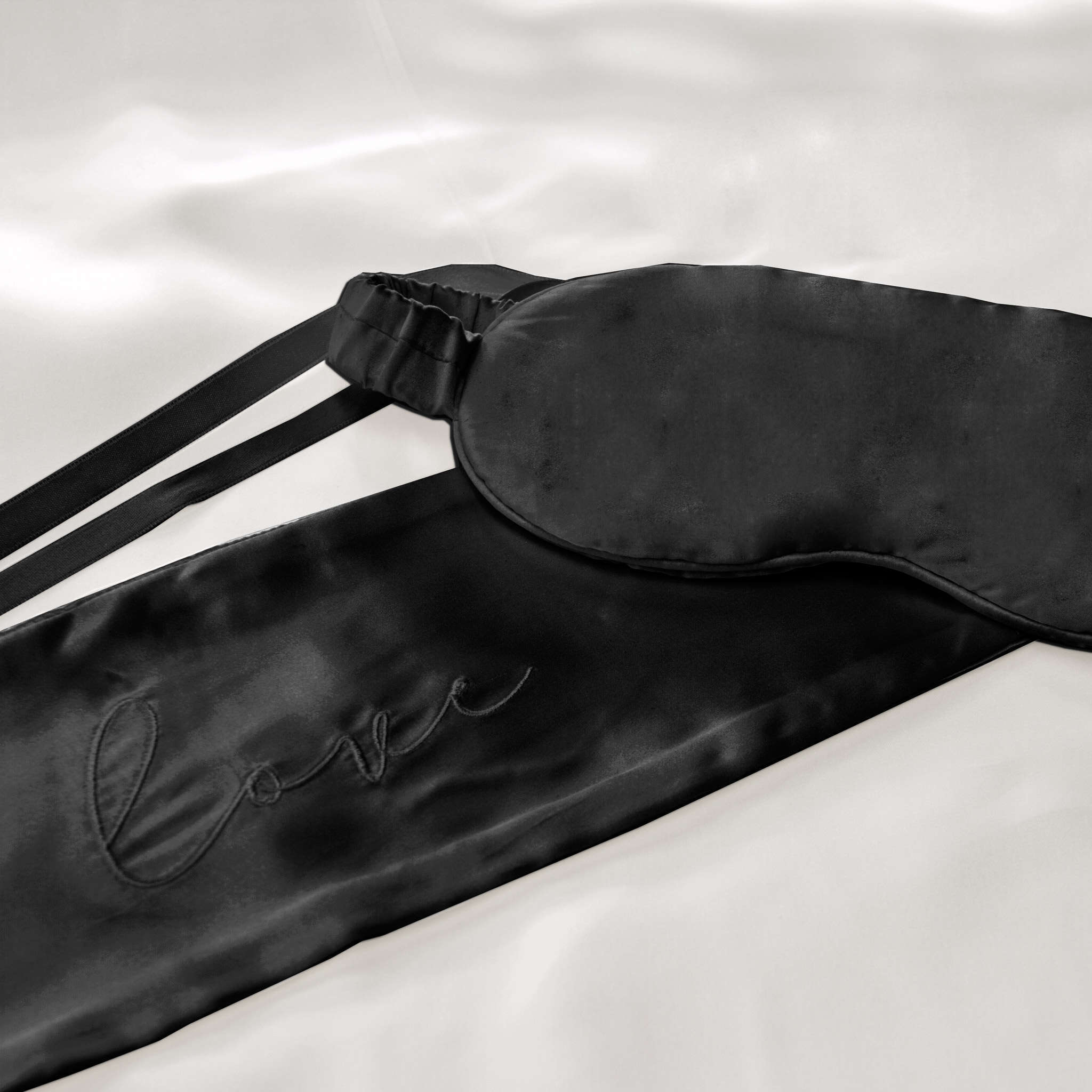 Our Maria Eye Mask is crafted from sumptuous mulberry silk. Made for prolonged wear, its softness invites calm, restful sleep. This eye mask comes in a beautiful bag woven from the same fabric and embroidered with the word “love.”