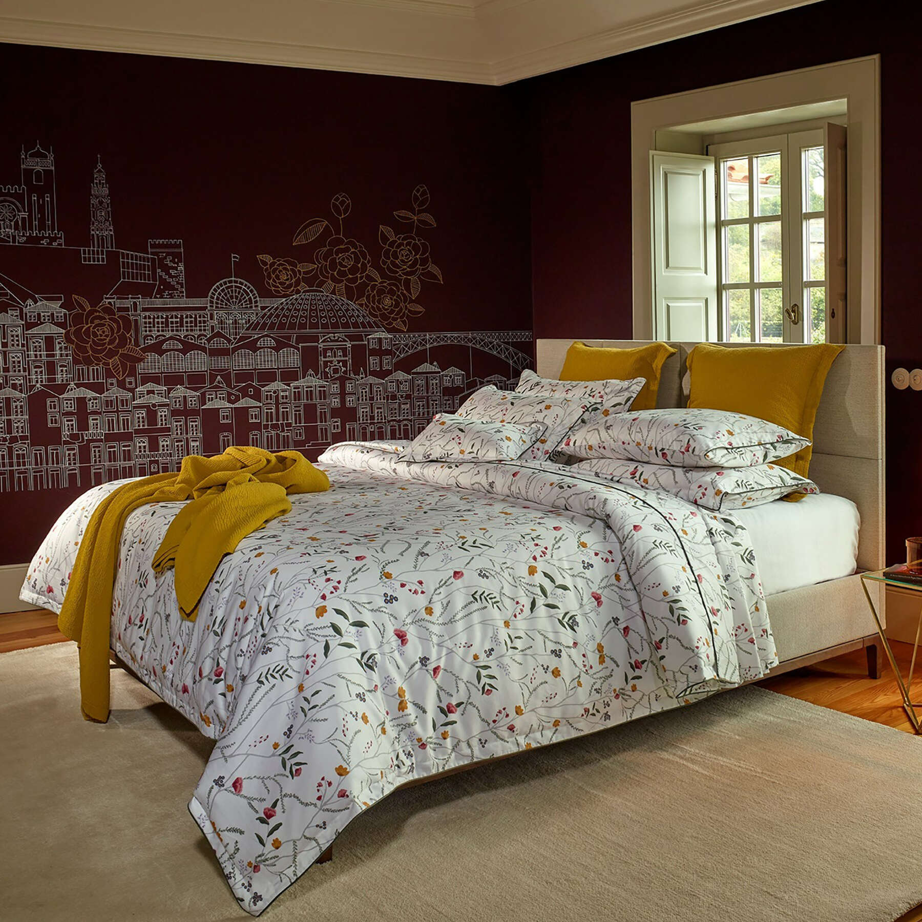 The playful, colorful print that characterizes our Infantas bedding was inspired by the nature that surrounds a charming Portuguese parish located on the slopes of Monte da Penha, in Guimarães.