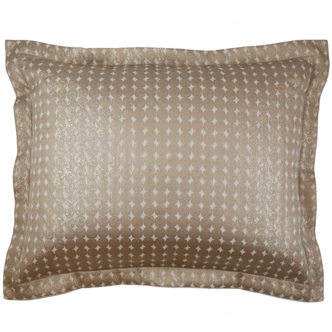 Inspired by ancient Roman currency, Coin's jacquard mixes gold, champagne, and taupe.