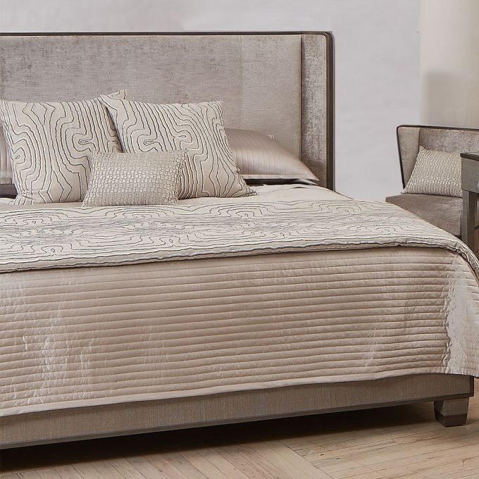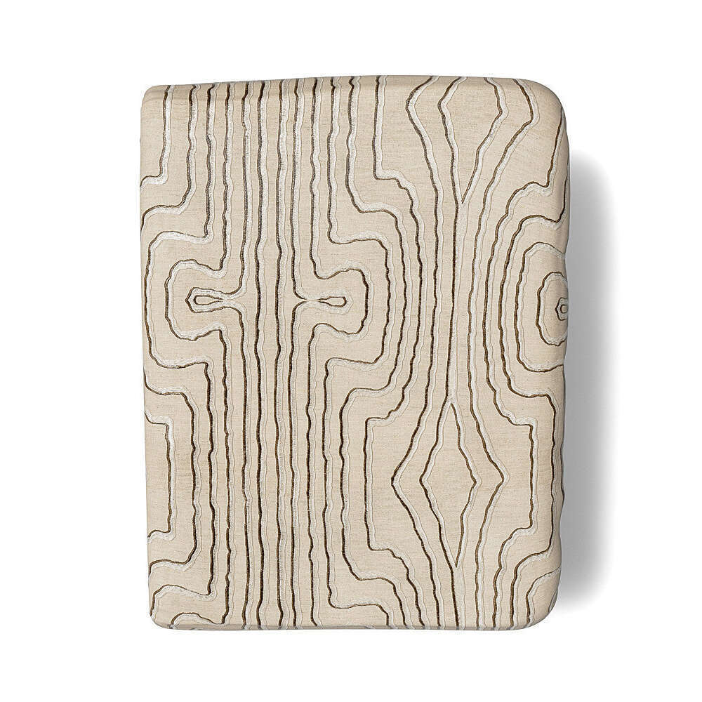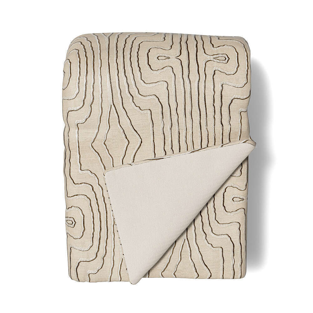Modern yet organic embroidery in a neutral, chic palette. Padded throw reverses to natural linen.