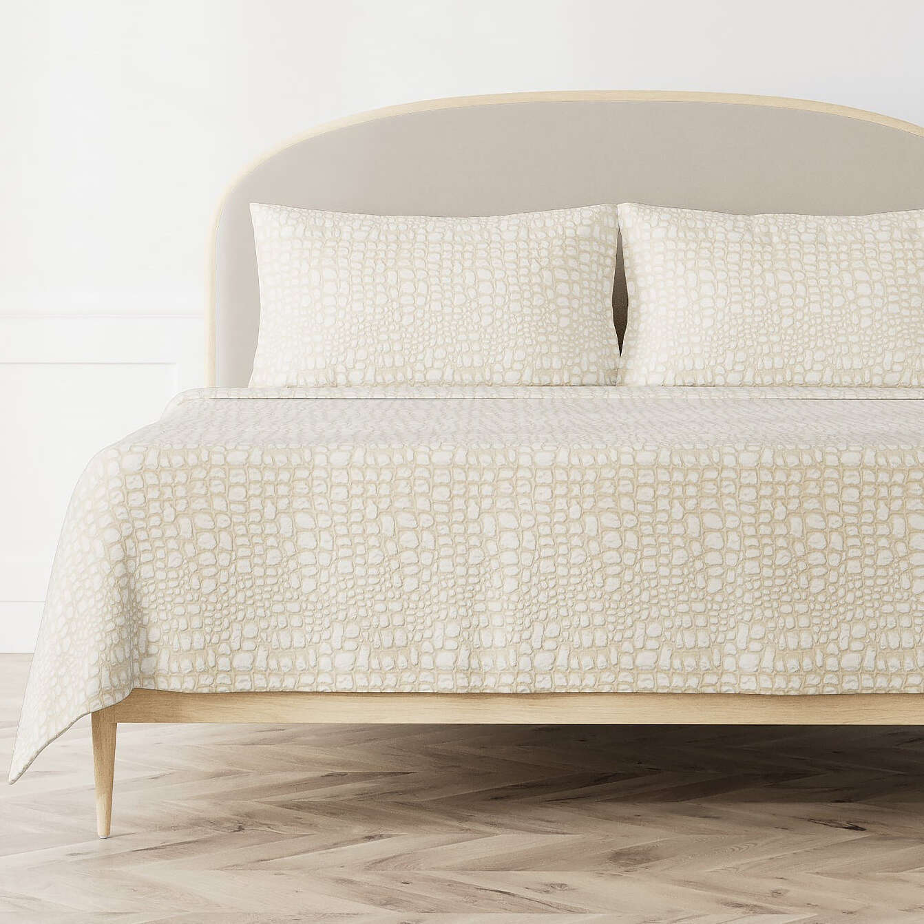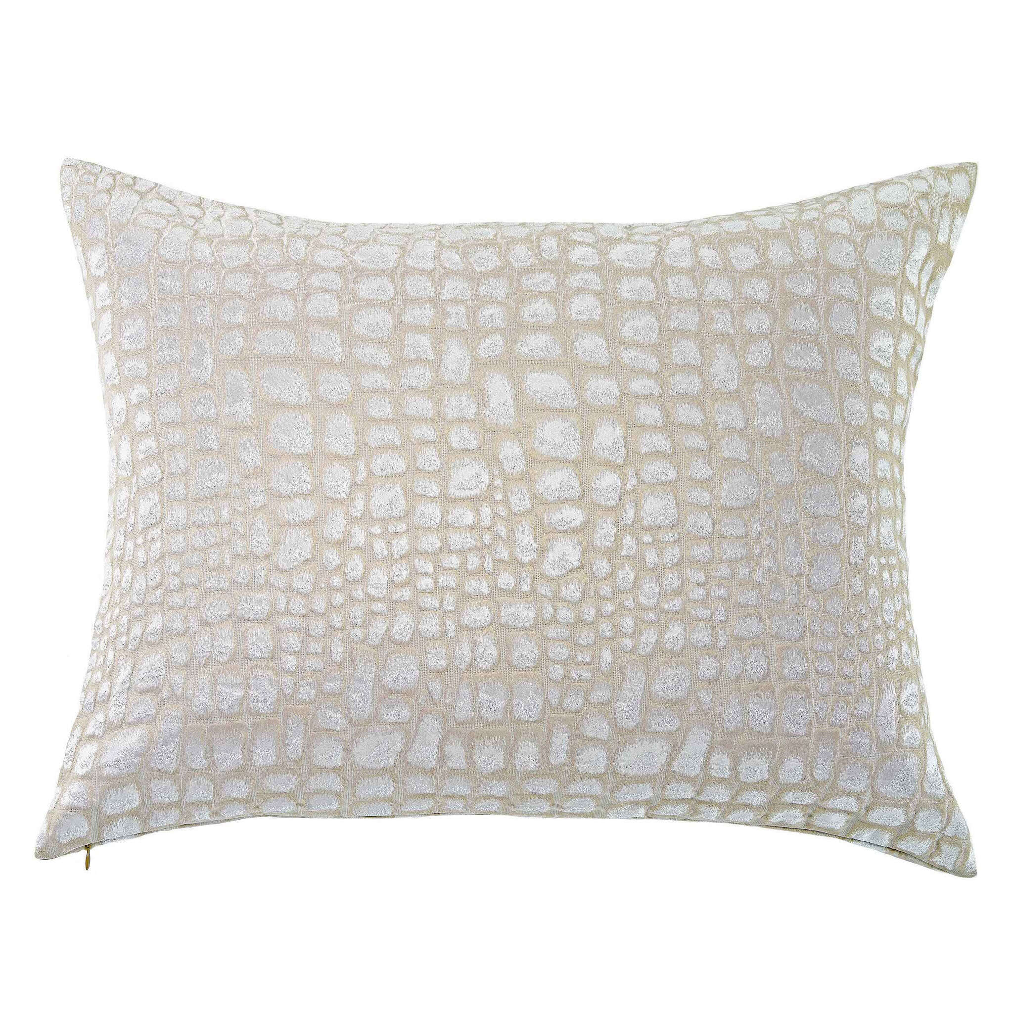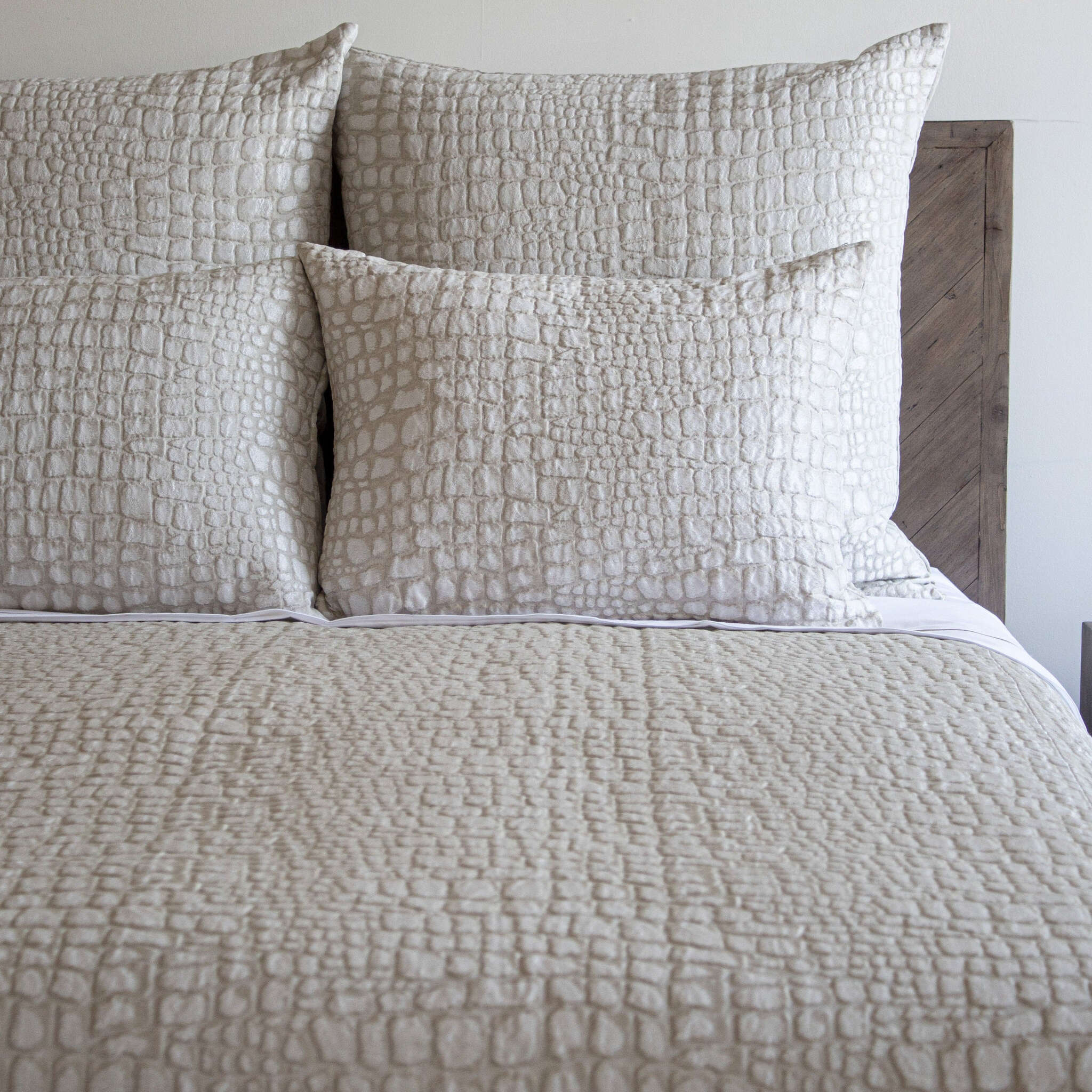 Inspired by luxurious leather handbags. This dimensional jacquard is beautiful and bold, despite coordinating with a variety of bedding collections.