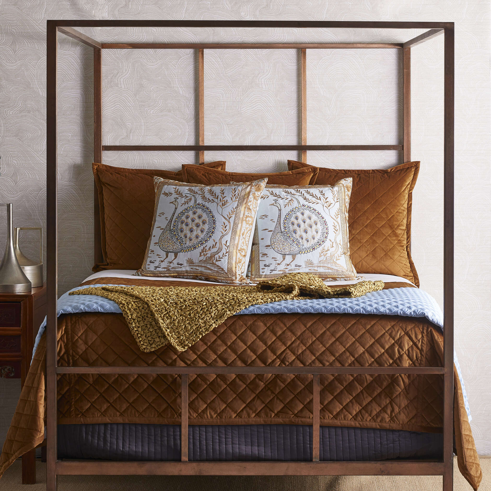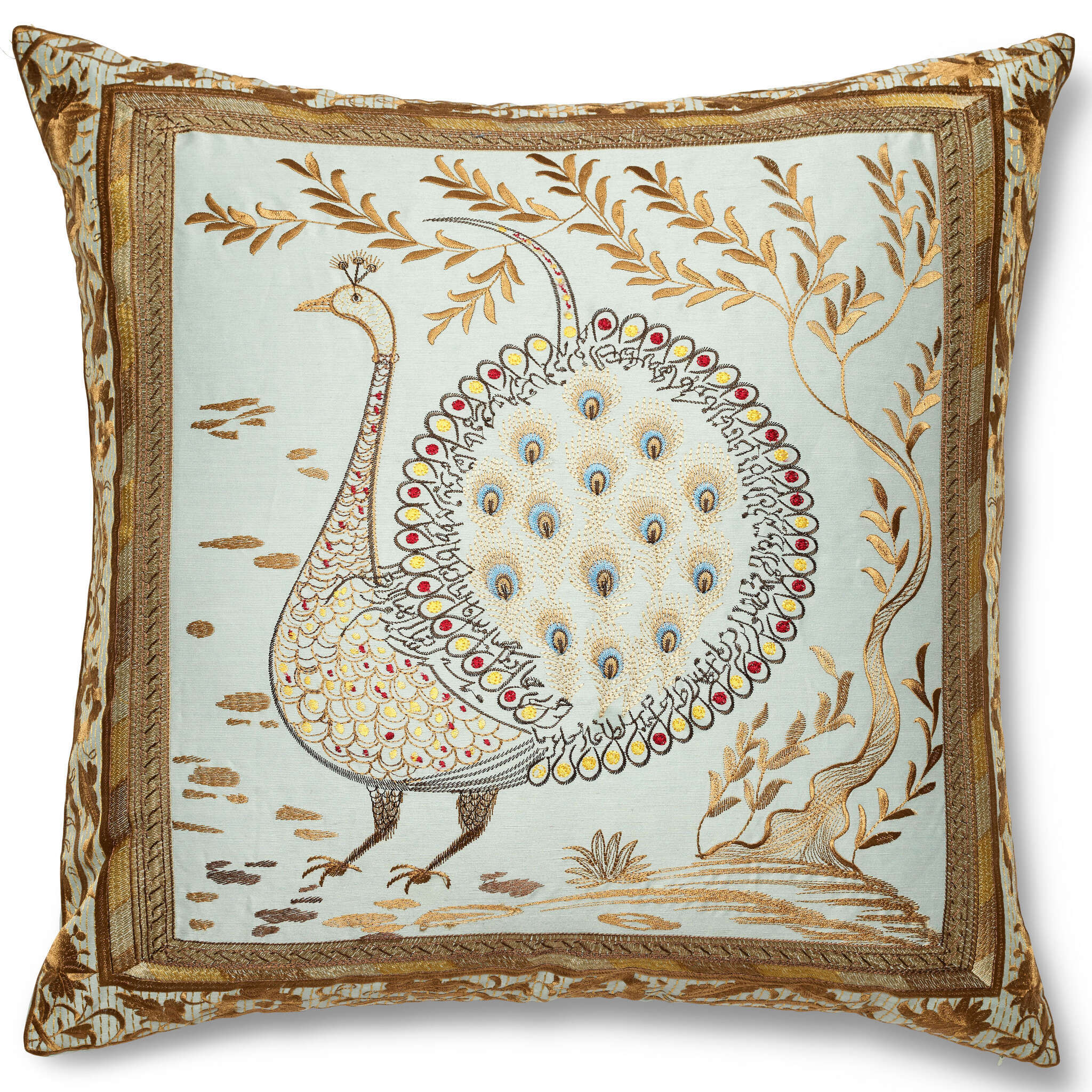 This delightful embroidery features a divani script in the peacock’s tail, consisting of blessings for an Ottoman Sultan. Part of The Met x Ann Gish.