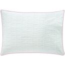 Flat sheet, pillowcases and shams are embellished with a lilac coloured piping finishing detail. Pillowcases and shams have an envelope enclosure which hides the pillow insert from view, duvet cover: button closure.