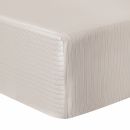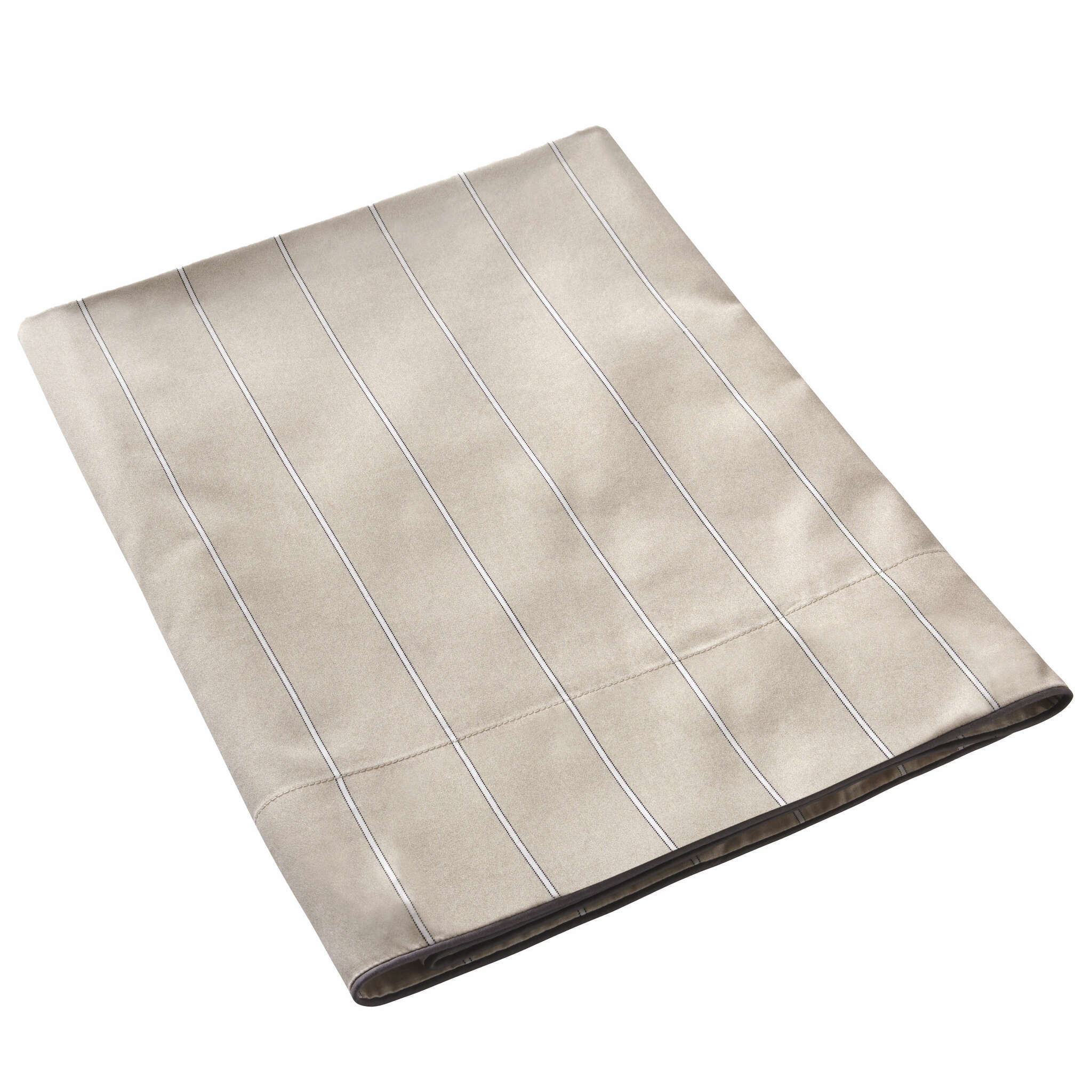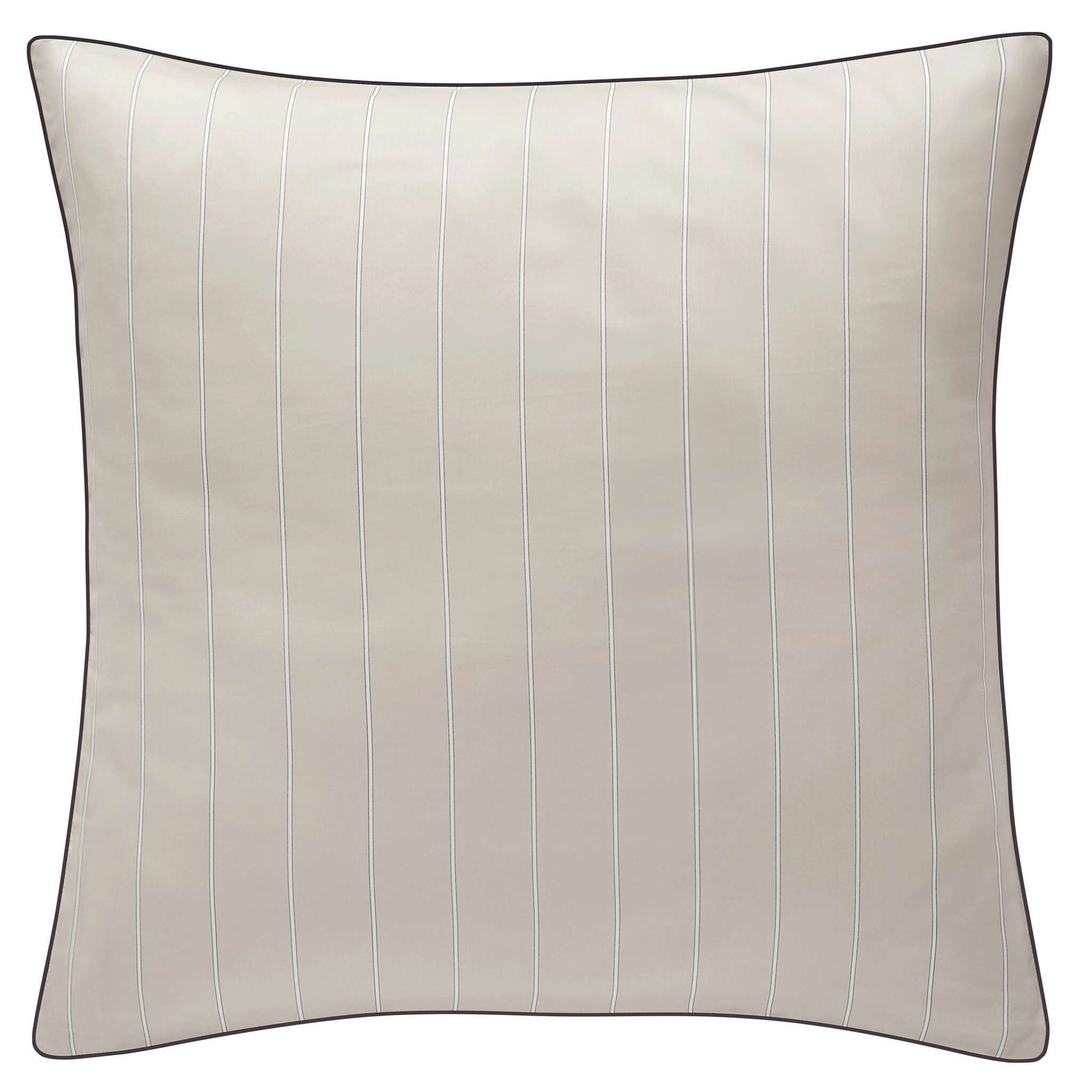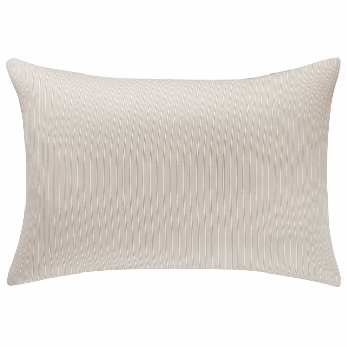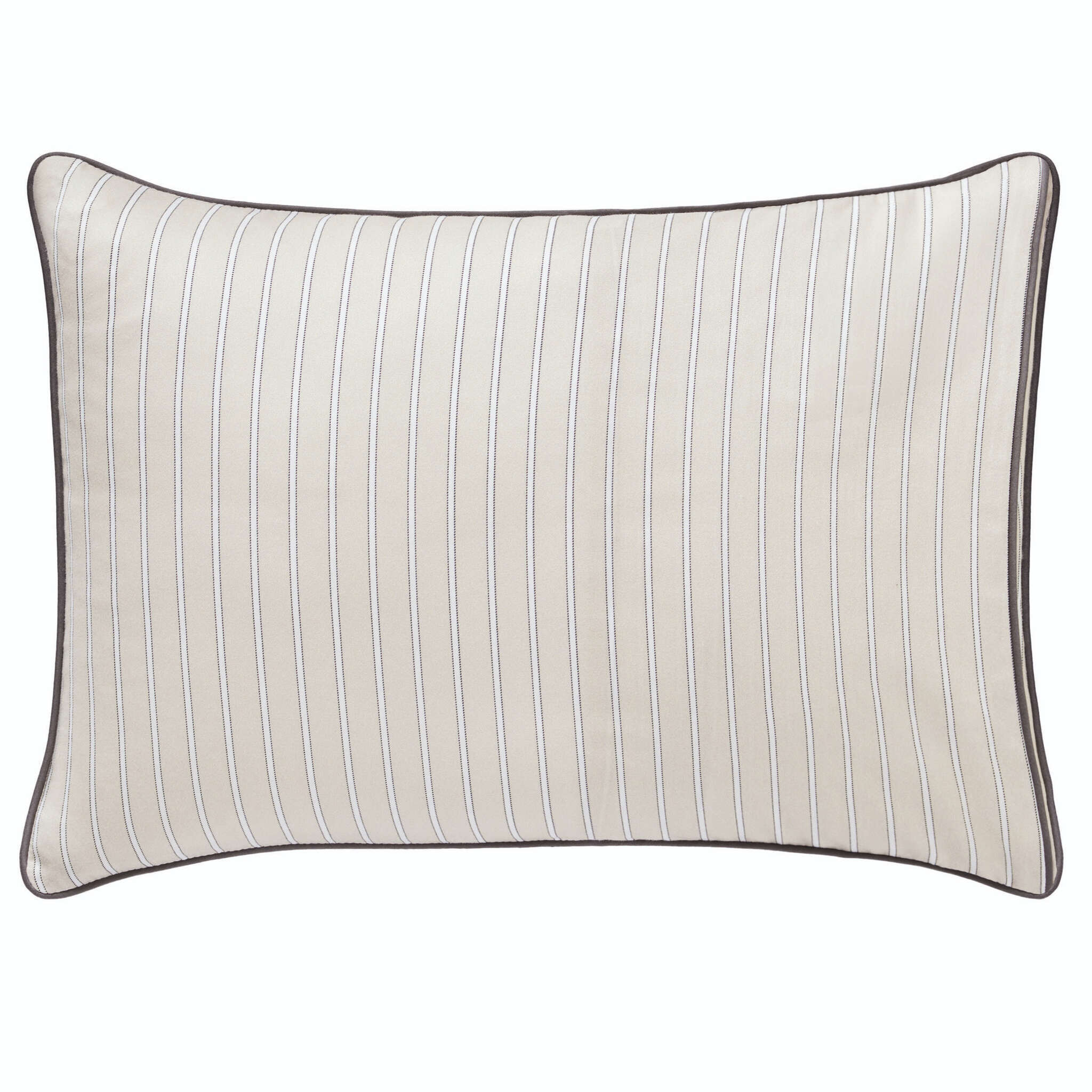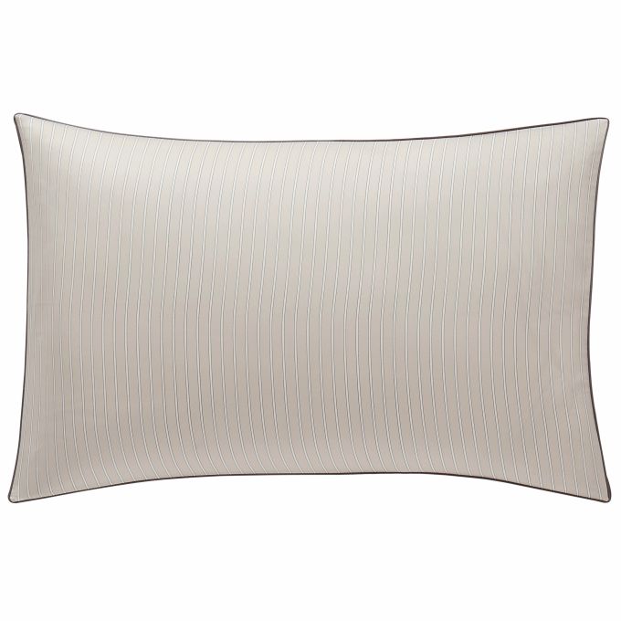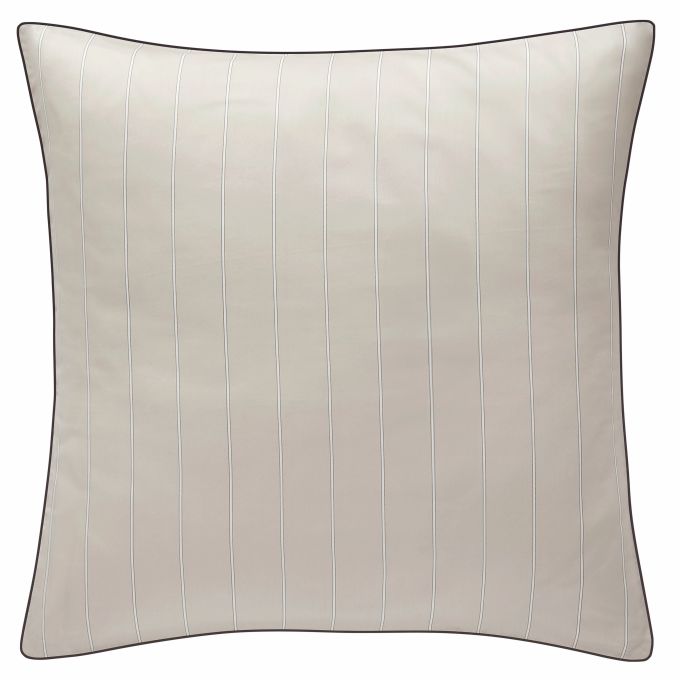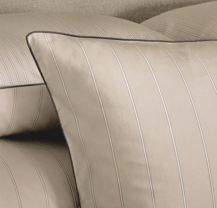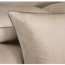 Journey bedding offers a very soothing, relaxing combination of charcoal outlined white stripes on a light beige ground.