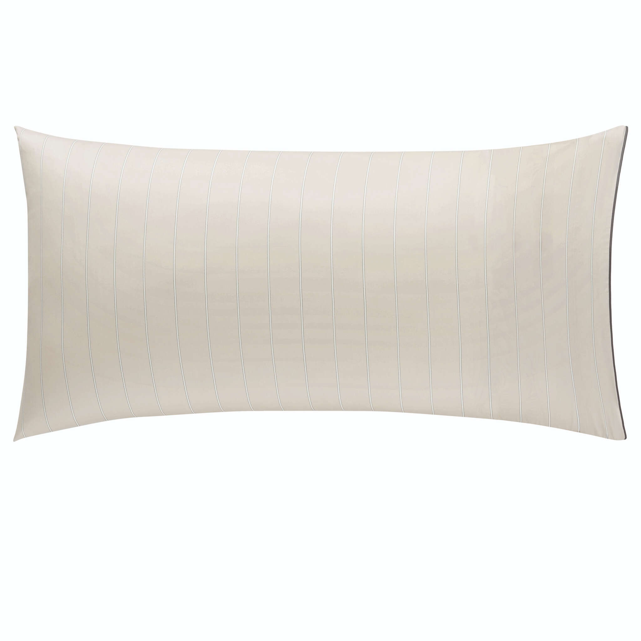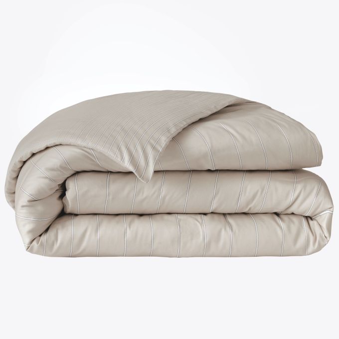 Journey duvet covers and shams are reversible, with the front having fine vertical stripes and the reverse side having wider spaced stripes.