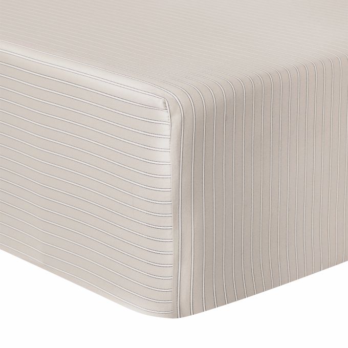 Fitted sheets and pillowcases are made with the narrow stripes print.