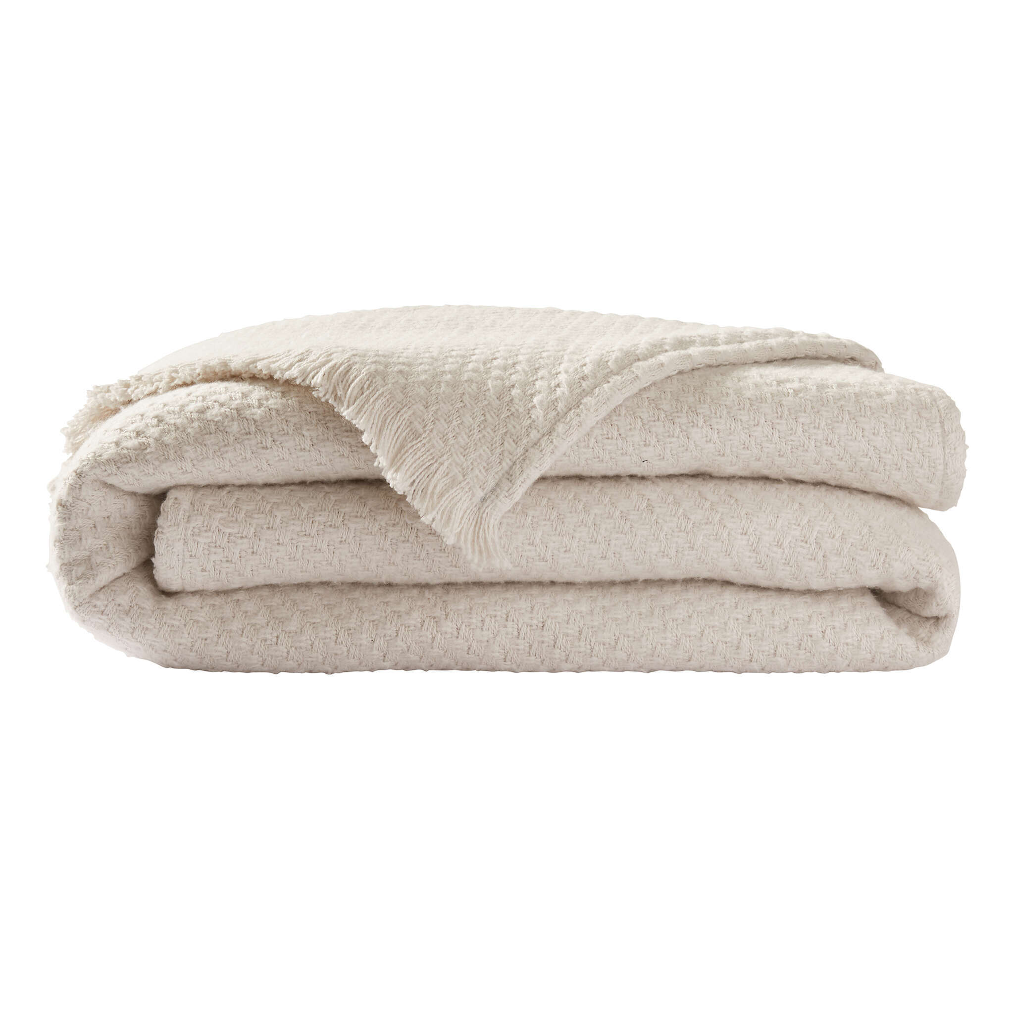 Moden, classic throw wih a chic weave design, embellished with fringe on the two short ends.
