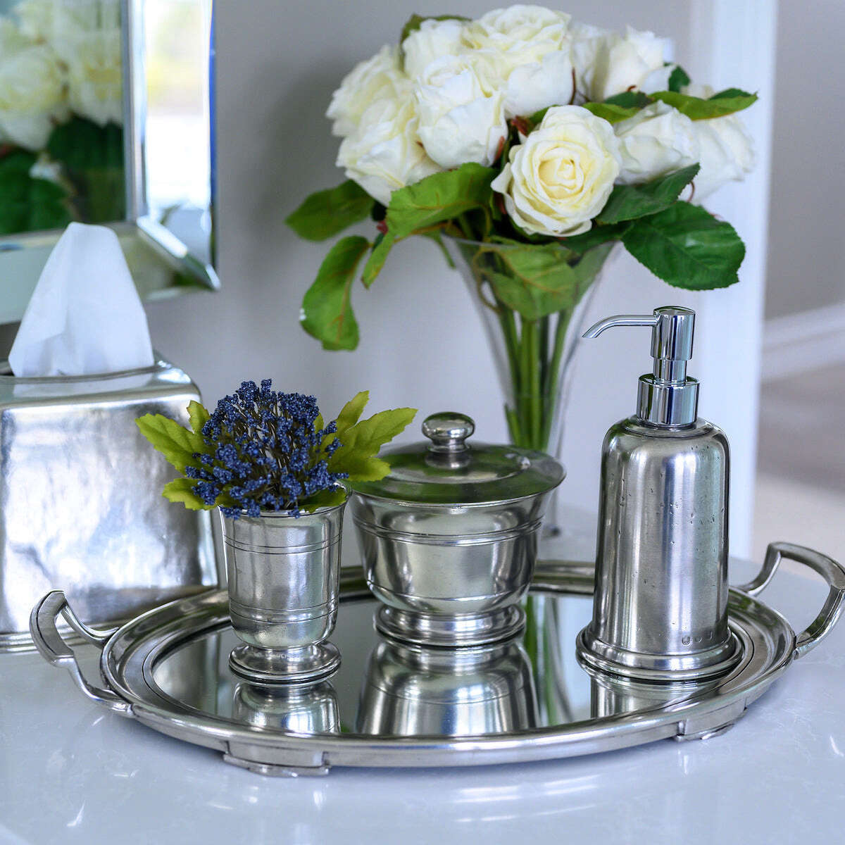 Our Roma collection is handcrafted with Italian pewter, these accessories create an elegant bath in any home. They transition from clean and contemporary to traditional with ease.