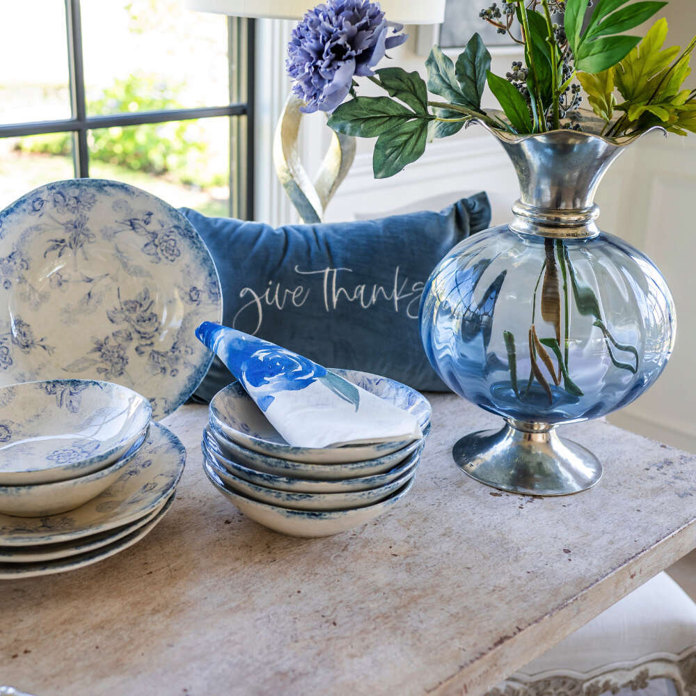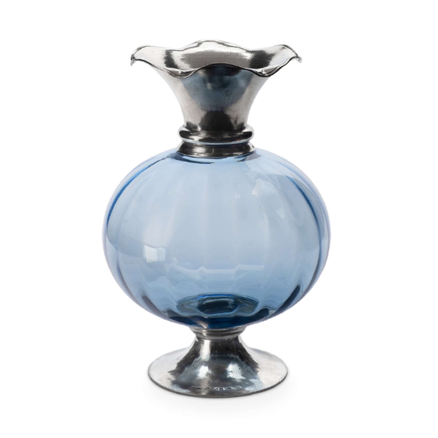 Stunning - the only way to describe this unique vase. Rippled, blue mouth-blown glass and a scalloped pewter rim make this an heirloom conversation piece.