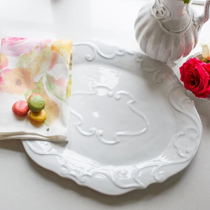 Can a piece be both understated and show stopping? If so, it is our Bella Bianca Ribbon Oval Platter. It is also also a wonderful display piece for your home. As they say in Italy: "Why not?"