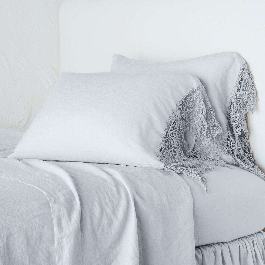 Our garment dyed Linen Pillowcases embody easy elegance. Finished cotton lace trim, our heirloom quality cases become softer with every wash, and remain cool and breathable during the warmer months.